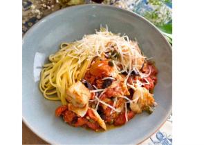 Για 4 άτομα Ετοιμασία: 10 λεπτά Μαγείρεμα: 30 λεπτά Υλικά - 1 πακέτο σπαγγέτι (ή Νο5 ή άλλα ζυμαρικά) - 400 γραμμάρια φιλέτο μπακαλιάρου (χωρίς κό...