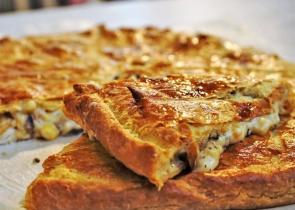 Για 8+ άτομα Ετοιμασία: 30 λεπτά Μαγείρεμα: 40 λεπτά Υλικά Για τη ζύμη - 400 γραμμάρια αλεύρι - 50 γραμμάρια μαργαρίνη (σε θερμοκρασία δωματίου)...