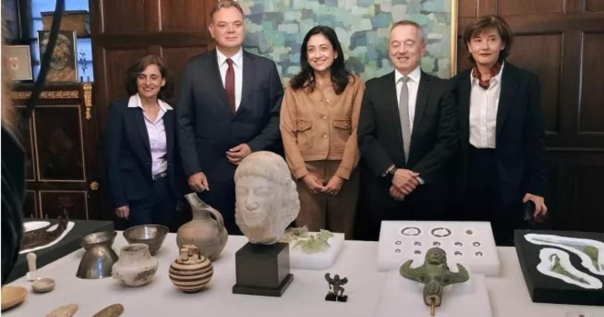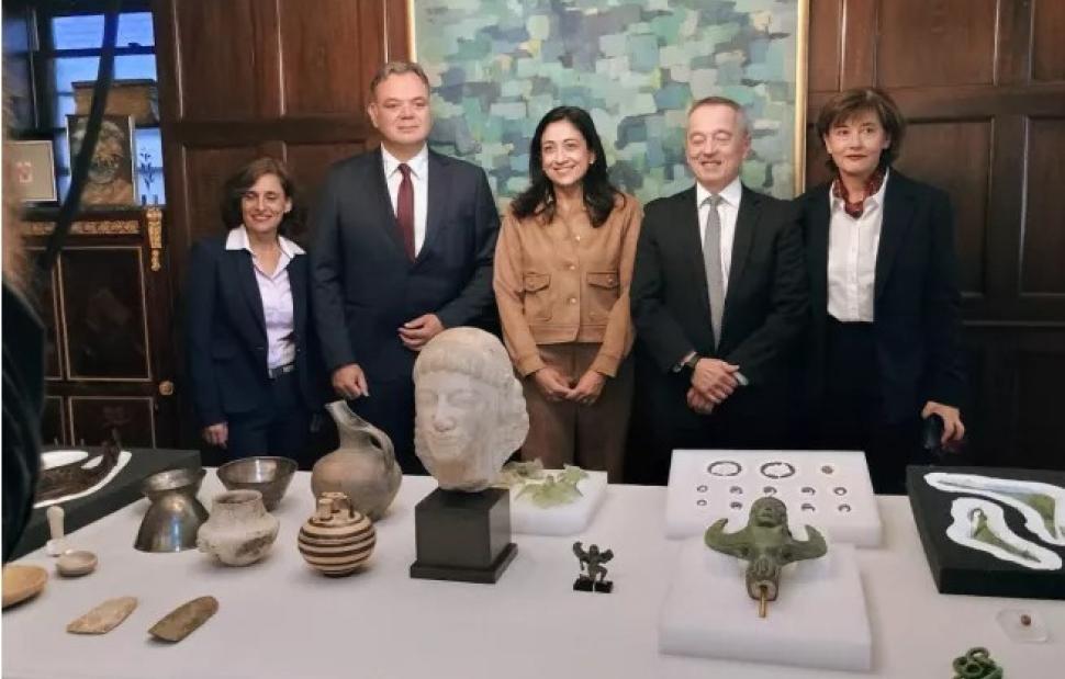 Η ανακοίνωση του υπουργείου Πολιτισμού, οι αρχαιότητες που επαναπατρίζονται καλύπτουν ένα ευρύ χρονολογικό φάσμα από την Τελική Νεολιθική (5.000-4.000 π.Χ.) έως την Ύστερη Ελληνιστική περίοδο (2ος/1ος αι. π.Χ.) και αποτελούν αντιπροσωπευτικά δείγματα της γλυπτικής, της μεταλλοτεχνίας και της κεραμικής. Ανάμεσά τους ξεχωρίζουν: Δύο λίθινες κεφαλές πελέκεων (5000-4000 π.Χ.), Μινωικός σφραγιδόλιθος από αχάτη με παράσταση αιγάγρου (3100 π.Χ.), τρεις μαρμάρινες Πρωτοκυκλαδικές φιάλες (2700-2400 π.Χ.), οπισθότμητη Πρωτοκυκλαδική πρόχους (2700-2300 π.Χ.), Μυκηναϊκός ψευδόστομος αμφορέας (1200-110 π.Χ.), δύο χάλκινα εξαρτήματα ζωνών από τη δυτική Μακεδονία (7ος αι. π.Χ.), χάλκινο πόδι επίπλου με τη μορφή Σειρήνας, έργο λακωνικού εργαστηρίου (περί το 600 π.Χ.), μαρμάρινη κεφαλή κούρου (περί τα μέσα του 6ου αι. π.Χ.), χάλκινο προσάρτημα με τη μορφή της Μέδουσας Γοργούς, έργο πιθανότατα κορινθιακού εργαστηρίου (ύστερος 6ος αι. π.Χ.), χάλκινο περίοπτο ελισσόμενο φίδι (5ος αι. π.Χ.), χρυσό περίαπτο περιδεραίου (5ος-4ος αι. π.Χ.), δύο σιδερένιες θυσιαστικές μάχαιρες (5ος-4ος αι. π.Χ.), τρεις αργυροί κωνικοί κάλυκες (περί τα 300 π.Χ.), μπρούντζινο προσάρτημα με την προτομή της Αταλάντης (2ος-1ος αι. π.Χ.).