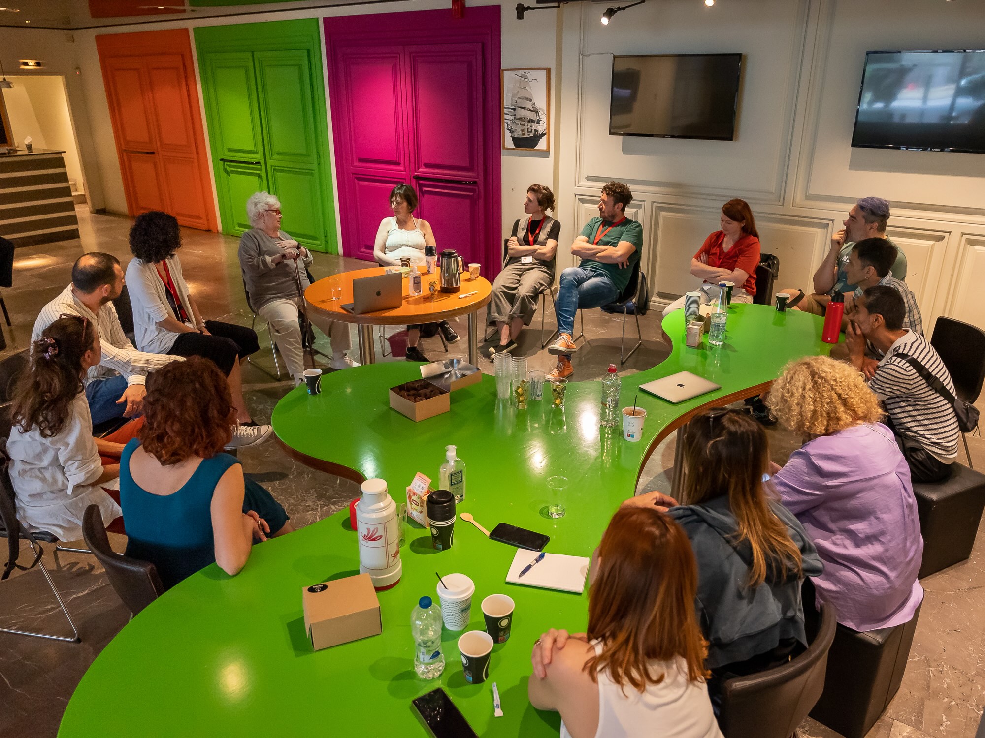 Στη συνάντηση παρευρέθηκε και η Ξένια Καλογεροπούλου, επίτιμη πρόεδρος της τωρινής ASSITEJ και εμπνεύστρια της πρώτης ASSITEJ πριν αρκετά χρόνια.