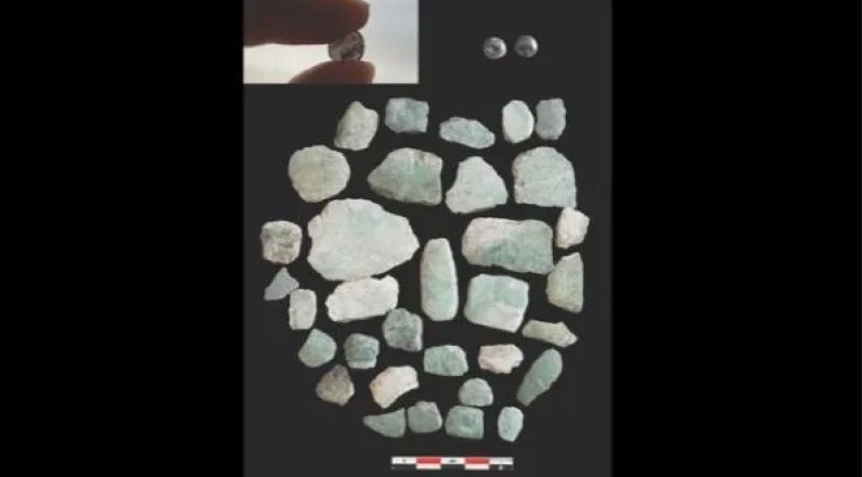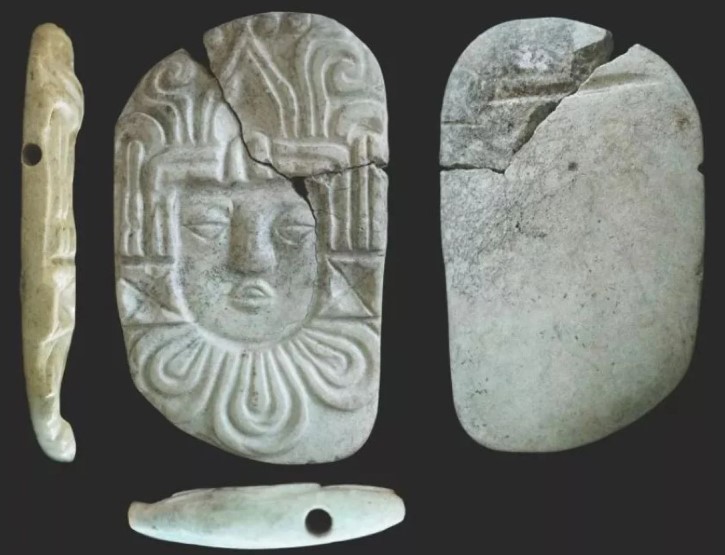 Τα στολίδια που βρέθηκαν στην ανασκαφή περιλαμβάνουν σχεδόν 1.500 θραύσματα από μενταγιόν πράσινων λίθων, χάντρες, πλάκες και μωσαϊκά, δεκάδες αντικείμενα κατασκευασμένα από οψιανό, και πάνω από 10.000 χάντρες από θαλασσινά κελύφη (πλήρεις και θρυμματισμένες), καθώς και άλλα αντικείμενα, όπως μενταγιόν από δόντια θηλαστικών. Ανάμεσα στα πιο αξιοσημείωτα ευρήματα, ήταν μια νεκρική μάσκα από νεφρίτη.