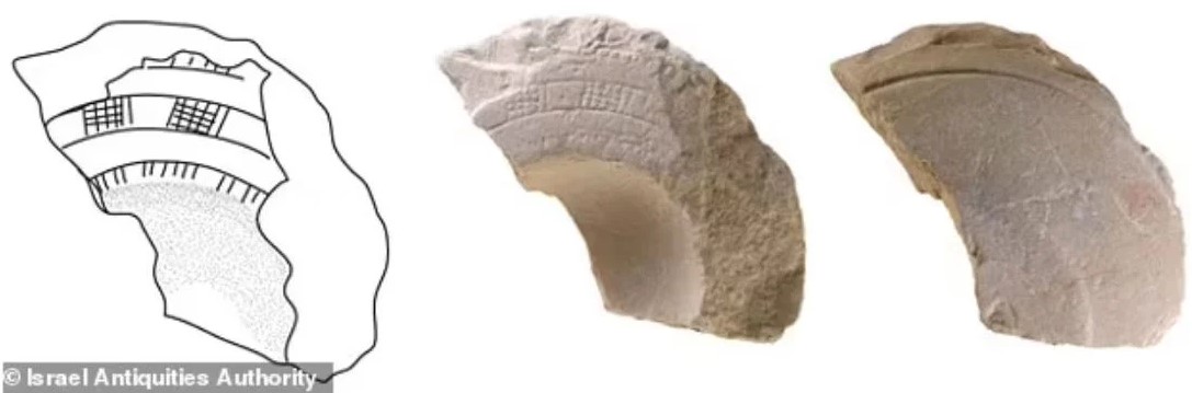 Οι ερευνητές, περιγράφοντας ένα περίτεχνο θραύσμα διακοσμητικού σκεύους από λευκό ασβεστόλιθο, ανέφεραν: «Το χείλος του είναι πλατύ και διακοσμημένο με τρεις ομόκεντρες ζώνες με ενδιάμεσα διαστήματα».