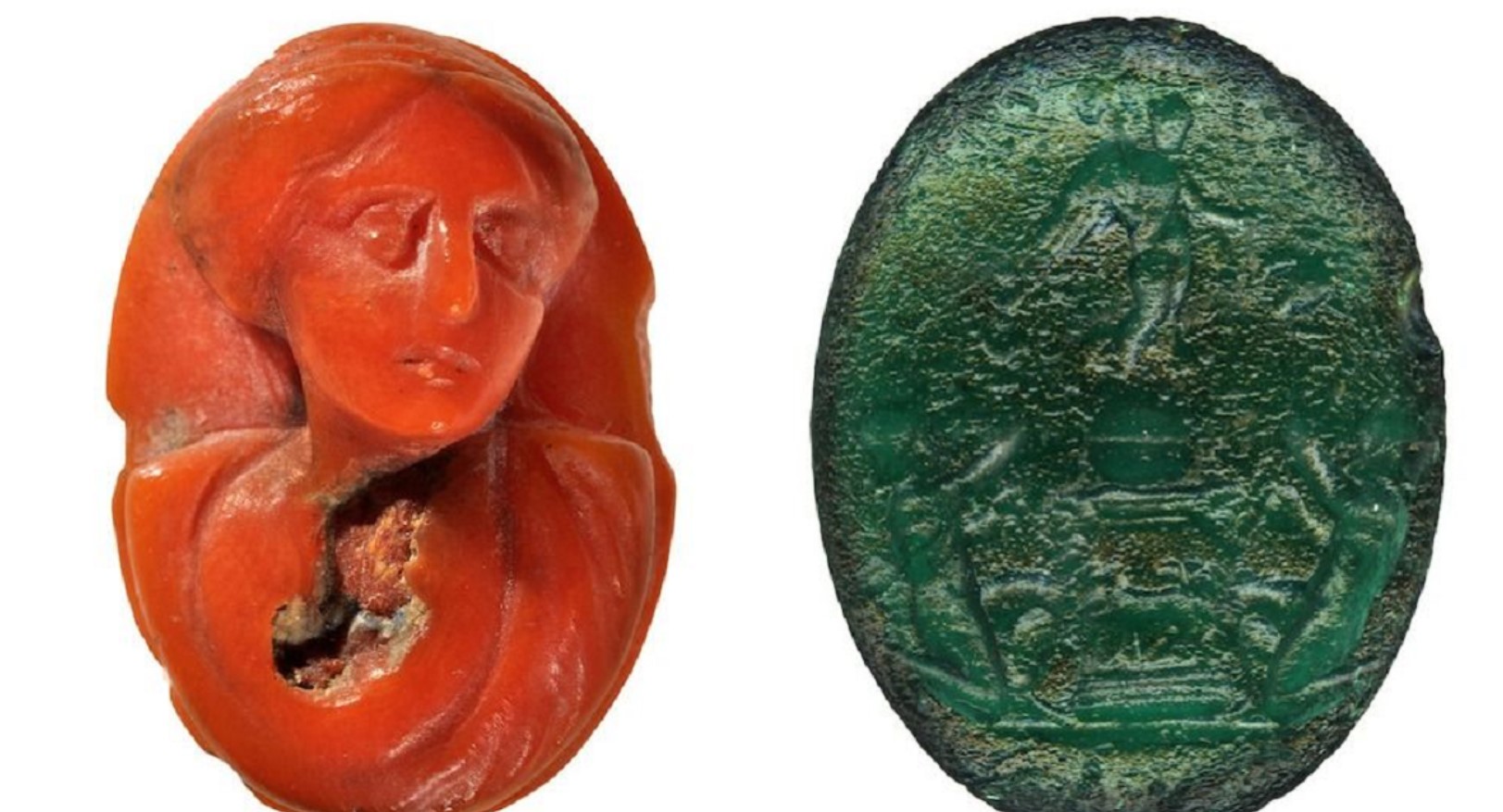 Επίσης, οι αρχαιολόγοι ανακάλυψαν δεκάδες πολύχρωμους πολύτιμους λίθους, χαραγμένους με ομοιώματα διαφόρων θεοτήτων και σημαντικών κτιρίων.