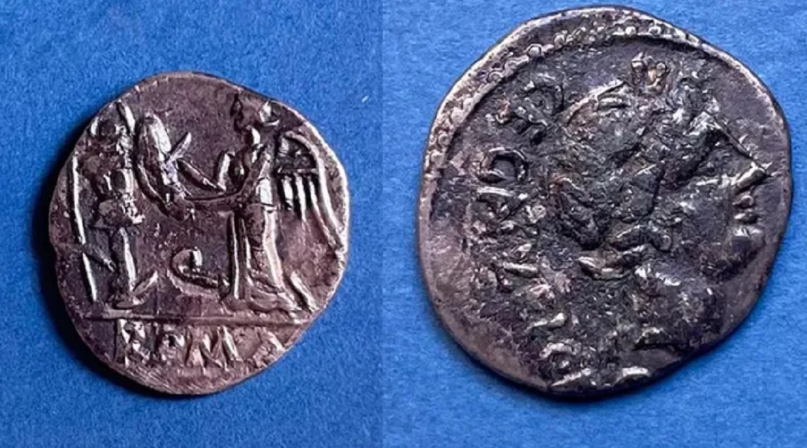 Ένα σημαντικό νόμισμα που ανακαλύφθηκε είναι ένα εξαιρετικό ‘quinarius‘, που χρονολογείται από το 97 π.Χ. Ο κουινάριος ήταν ένα μικρό αργυρό Ρωμαϊκό νόμισμα, που άξιζε όσο το ήμισυ του δηναρίου. Αυτό το νόμισμα διαθέτει μια λεπτομερή απεικόνιση μιας «φτερωτής νίκης» να γράφει σε μια ασπίδα, που στηρίζεται σε ένα τρόπαιο. Η σαφής παρουσία της λέξης ‘ROMA’ μαρτυρά τον εορτασμό των στρατιωτικών νικών και τη σύνδεση της πόλης με τη ρωμαϊκή δύναμη. Το μοτίβο είναι συμβολικό των στρατιωτικών νικών της Ρώμης και της δύναμης και της κυριαρχίας της έναντι των εχθρών της.