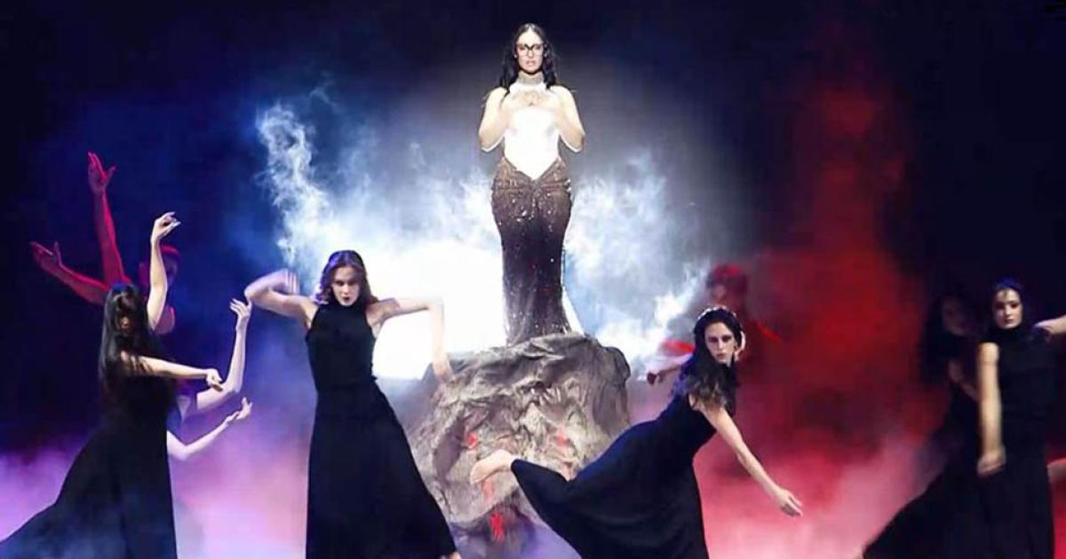 Στο κέντρο της σκηνής, η Κλαυδία εμφανίστηκε πάνω σε έναν βράχο, που παρέπεμπε στην παρουσίαση του κομματιού στη Eurovision 2025, φορώντας ένα λευκό και χρυσό φόρεμα.