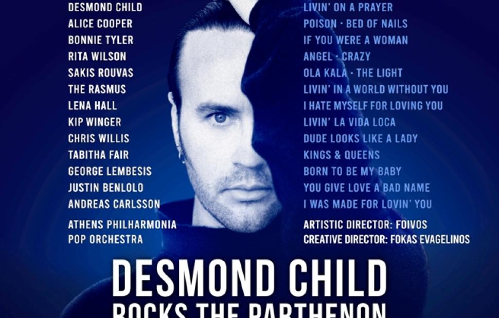 Ο θρυλικός συνθέτης και παραγωγός Desmond Child έρχεται στην Ελλάδα και ενώνει τις δυνάμεις του με τα λαμπρότερα ονόματα της παγκόσμιας μουσικής σκηνής, σε μία μοναδική συναυλία – αφιέρωμα στον ελληνικό πολιτισμό: “DESMOND CHILD ROCKS THE PARTHENON!”, με Μεγάλο Υποστηρικτή την COSMOTE.