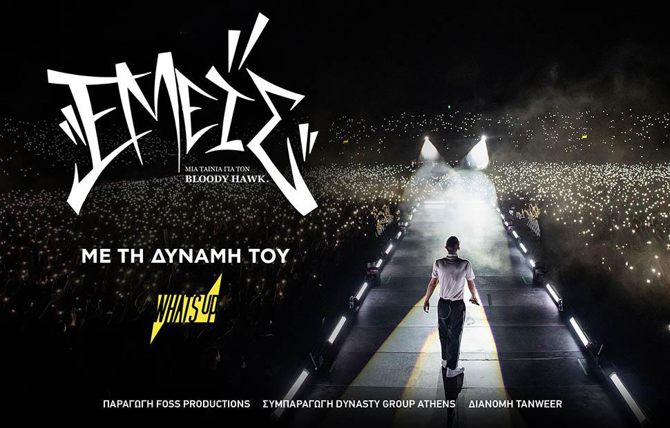 Στις 10 Απρίλιου κυκλοφορεί στις κινηματογραφικές αίθουσες, με τη δύναμη του WHAT’S UP, το ντοκιμαντέρ «ΕΜΕΙΣ - Μία ταινία για τον Bloody Hawk». Η ταινία ακολουθεί τον δημοφιλή hip hop artist, με αφορμή την πολύ επιτυχημένη περιοδεία του πέρυσι το καλοκαίρι σε όλη την Ελλάδα, που ξεκίνησε από την Αθήνα και κατέληξε στη Ξάνθη. Η δημιουργική ομάδα πίσω από την ταινία, επιχειρεί να χαρτογραφήσει σημαντικές στιγμές της ζωής του πολλαπλά πλατινένιου καλλιτέχνη, γύρω από τη μεταμόρφωσή του από έναν εσωστρεφή έφηβο από την επαρχία, σε έναν τραγουδιστή που η σκηνική παρουσία του αποπνέει έντονη αυτοπεποίθηση και σιγουριά.
