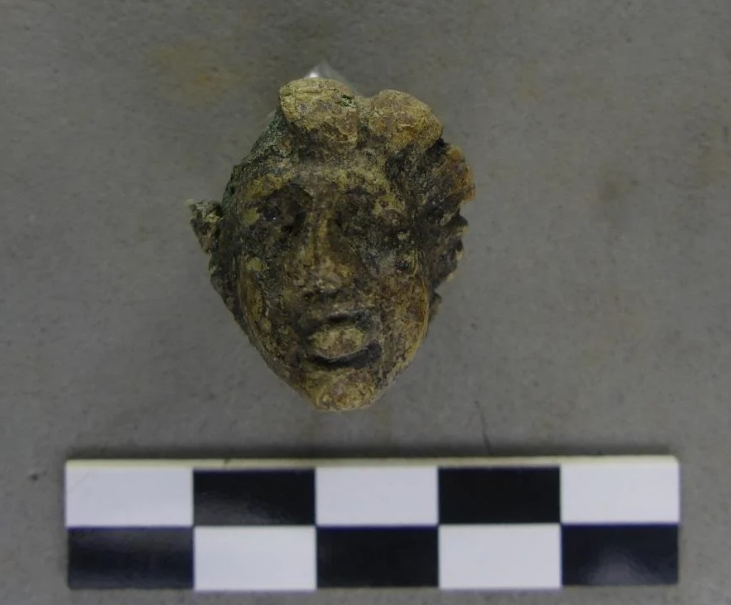 Εκτός από τα πολυάριθμα δείγματα που ελήφθησαν, τα οποία θα δώσουν πληροφορίες για το παλαιοπεριβάλλον, ανακαλύφθηκαν κεραμικά θραύσματα και νομίσματα της ύστερης αυτοκρατορικής περιόδου. Στην καταληκτική πλήρωση της λεκάνης αυτής της τρύπας ποτίσματος, ανακαλύφθηκε ένα μεγάλο θραύσμα μιας μάσκας που αντιπροσωπεύει το πρόσωπο μιας θεότητας ή μέδουσας. Η ποικιλία τεχνουργημάτων υποστηρίζει την υπόθεση ότι η τοποθεσία είχε μνημειοποιηθεί ήδη από τον 3ο αιώνα.