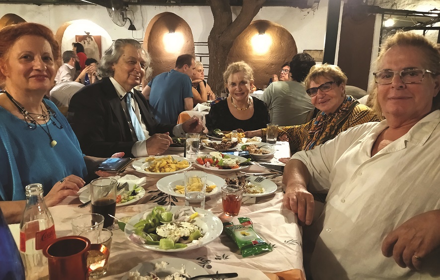 Λίγο αργότερα, στο πέρας των συζητήσεων με τα μέλη του Δ.Σ., ο Παύλος Πισάνος και η Δρ Ευαγγελία Δανιήλ παρέθεσαν στους τρεις εκλεκτούς προσκεκλημένους δείπνο σε αθηναϊκή ταβέρνα συνεχίζοντας τη συζήτηση με ενδιαφέρουσες προτάσεις για το πρόγραμμα «Heptapolis – Τριλογία, Το Όραμα των Δελφών».