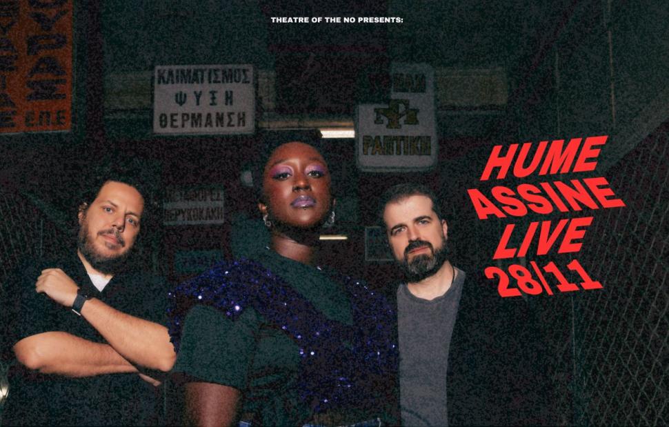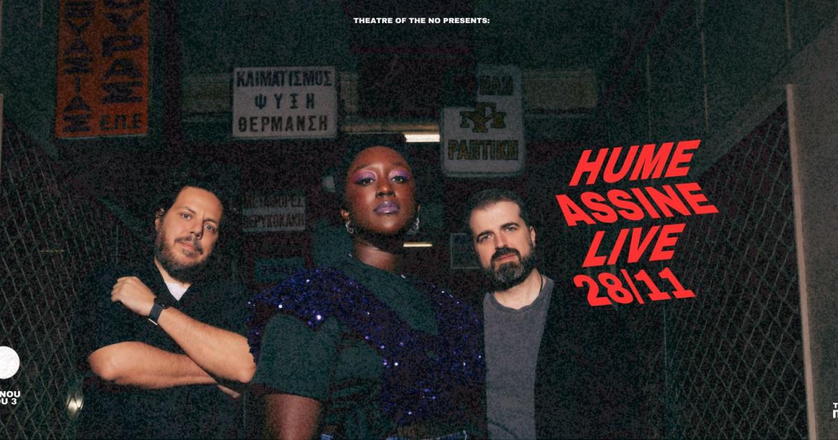 Οι (Χιουμ Ασίν) έρχονται για πρώτη φορά στη σκηνή του «Theatre of the No», σε ένα μοναδικό live την Παρασκευή 28 Νοεμβρίου στις 21:30. Το αθηναϊκό τρίο, καταξιωμένο ως μία από τις πιο δημιουργικές παρουσίες της σύγχρονης μουσικής σκηνής, θα παρουσιάσει σε live προακρόαση υλικό από τον επερχόμενο τέταρτο δίσκο του συνδυάζοντας samples, synths, live beats και φωνητικά.