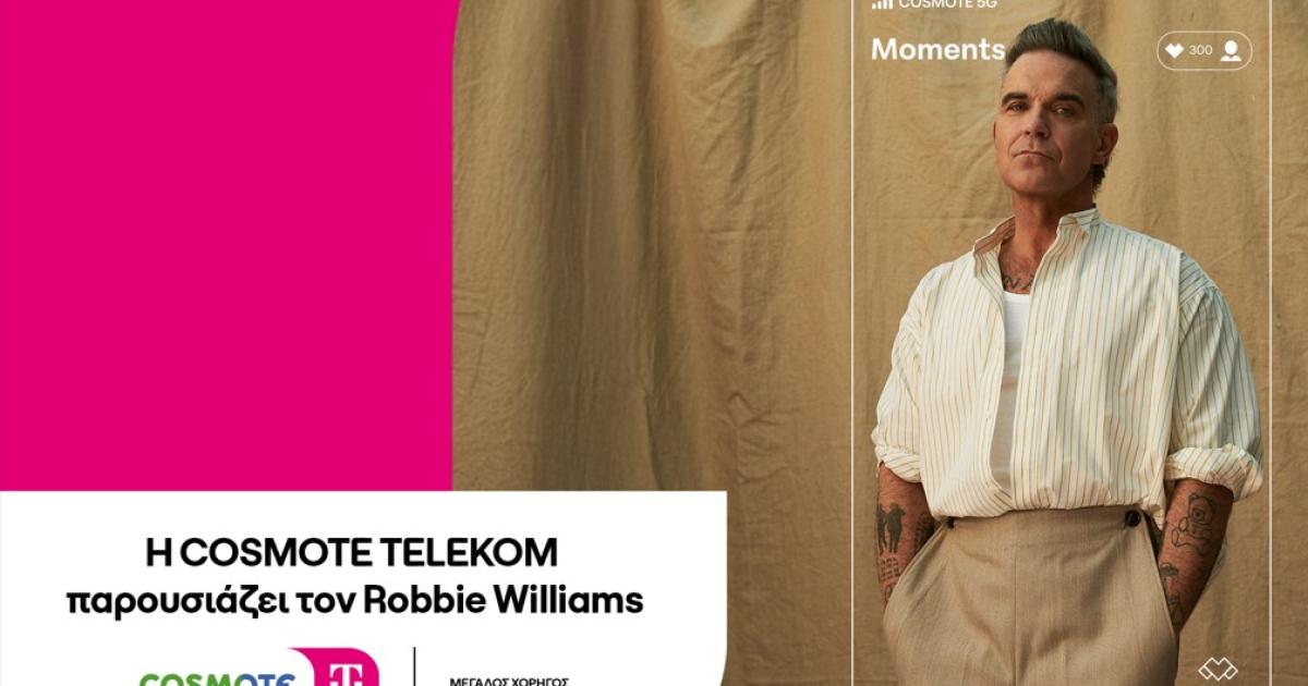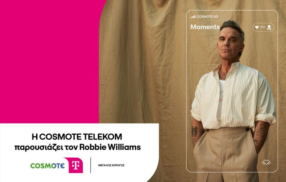 Τον Robbie Williams παρουσιάζει η COSMOTE TELEKOM, την Πέμπτη 2 Οκτωβρίου στο Καλλιμάρμαρο Παναθηναϊκό Στάδιο, ως Μεγάλος Χορηγός σε ένα από τα μεγαλύτερα μουσικά events της χρονιάς.