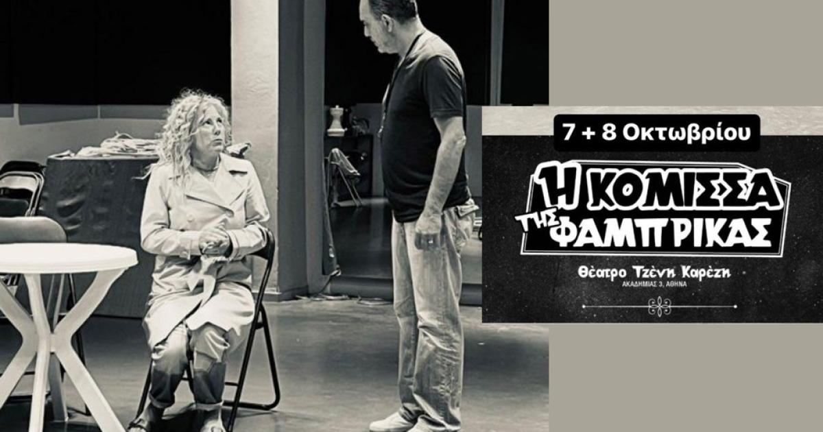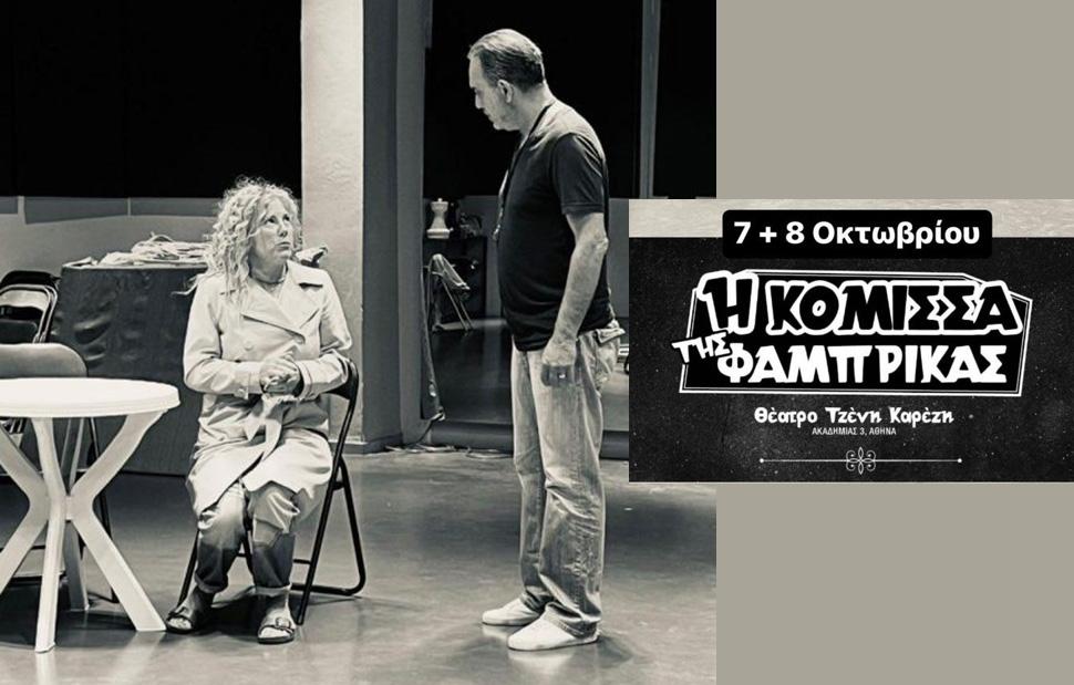 Ημέρες και ώρες παραστάσεων: Παρασκευή 7 και Σάββατο Οκτωβρίου, στις 8:30 το βράδυ στο θέατρο «Τζένη Καρέζη»