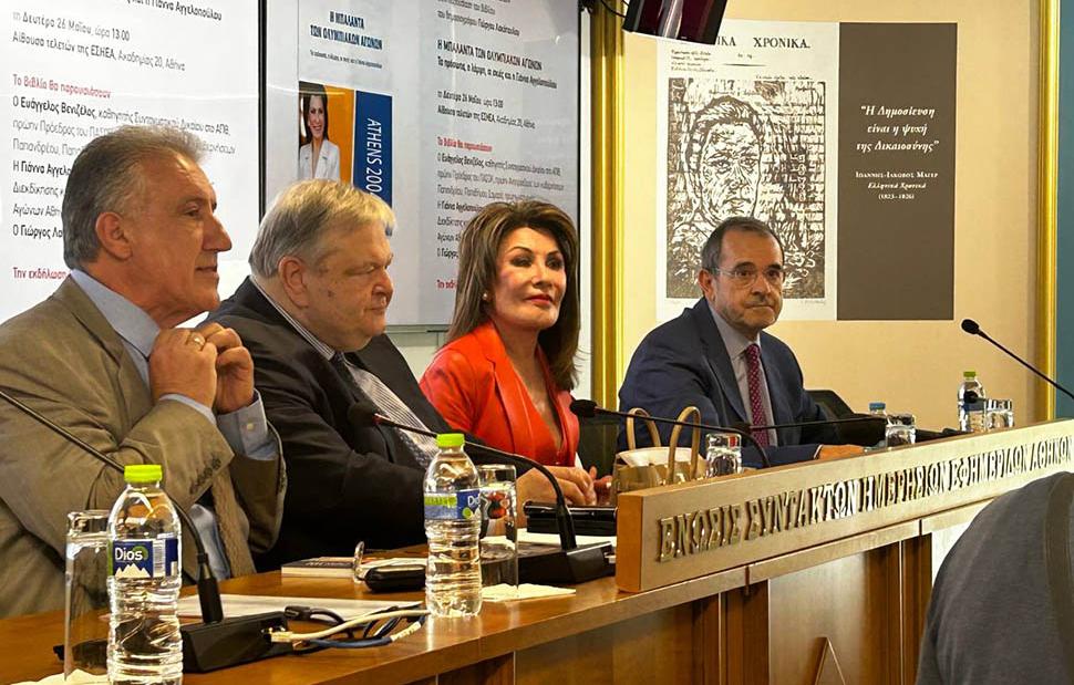 Σε μια κατάμεστη αίθουσα, στον πρώτο όροφο της ΕΣΗΕΑ, παρουσιάστηκε το βιβλίο του Γιώργου Λακόπουλου «Η μπαλάντα των Ολυμπιακών Αγώνων».