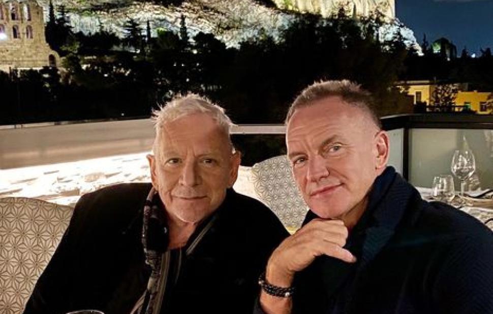 Την φωτογραφία δημοσίευσε στον προσωπικό του λογαριασμό στο Facebook ο Eric Burdon, για να ευχηθεί στον φίλο του Sting. Στο καρέ, οι δυο τους ποζάρουν πίνοντας κρασί με φόντο την βραδινή Ακρόπολη, γιορτάζοντας τα γενέθλια του "Άγγλου στη Νέα Υόρκη".
