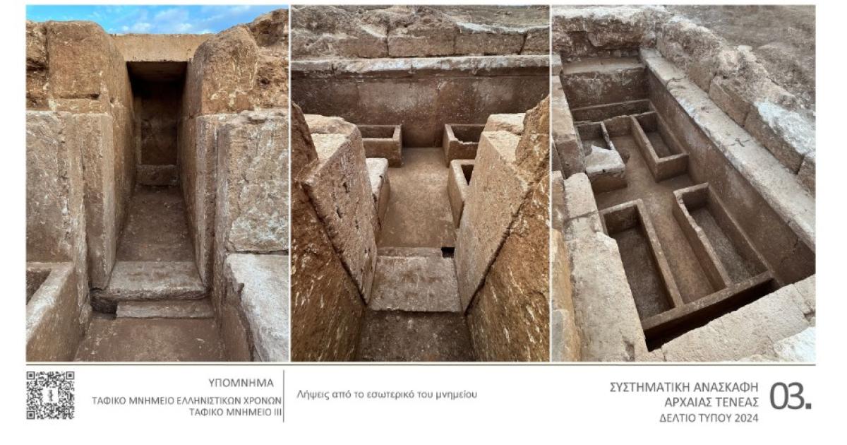Τα ευρήματα που βρέθηκαν απ’ το εσωτερικό του μνημείου και απ’ τους τάφους, είναι πλούσια και χρονολογούνται στα ελληνιστικά και στα ρωμαικά χρόνια, σύμφωνα με την ανακοίνωση του υπουργείου Πολιτισμού.