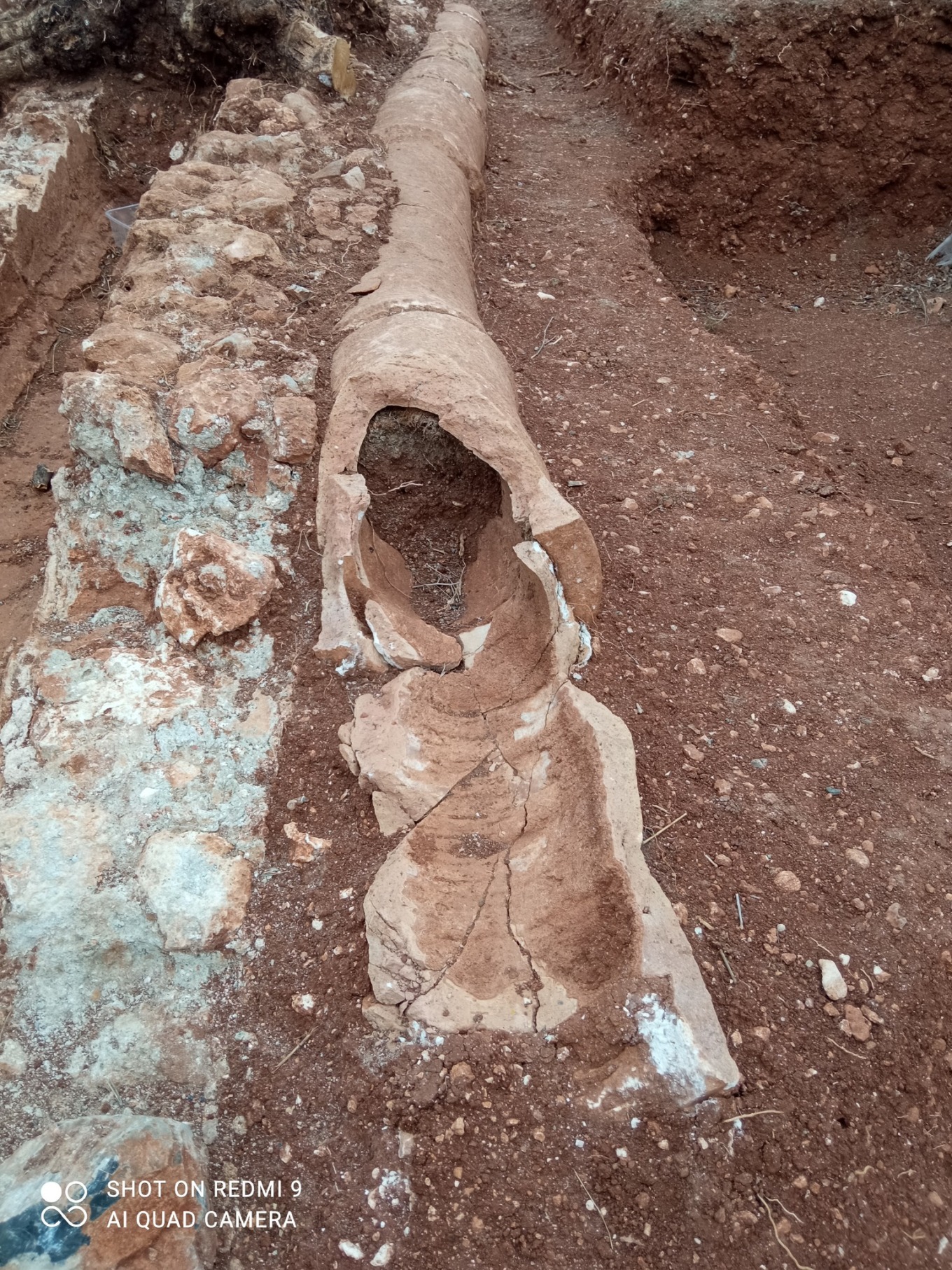 Αγαπητοί μου φίλοι καλό μήνα ! Με μεγάλη χαρά σας παρουσιάζω σήμερα το νέο-αποκαλειφθέντα από την αρχαιολογική υπηρεσία αγωγό. Το τμήμα του αγωγού βρίσκεται 500 περ. μ. νότια του εθνικού κόμβου Χερσονήσου και ήρθε στο φως, στα πλαίσια των εργασιών για τη διάνοιξη του δρόμου που θα συνδέει το ΒΟΑΚ με το αεροδρόμιο Καστελίου. Ο αγωγός μετέφερε από το Καλό Χωριό και το Κράσι το νερό στη Χερσόνησο. Αποτελείται από δύο τμήματα έναν ανοικτό (αυλάκι) πλάτους περ. 40 εκ. και από ένα πήλινο (κλειστό) διαμέτρου περίπου 25 εκ. Περισσότερες πληροφορίες αναμένουμε από την αρχαιολογική υπηρεσία.