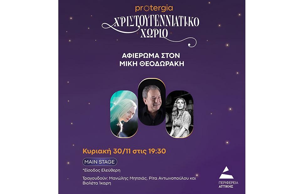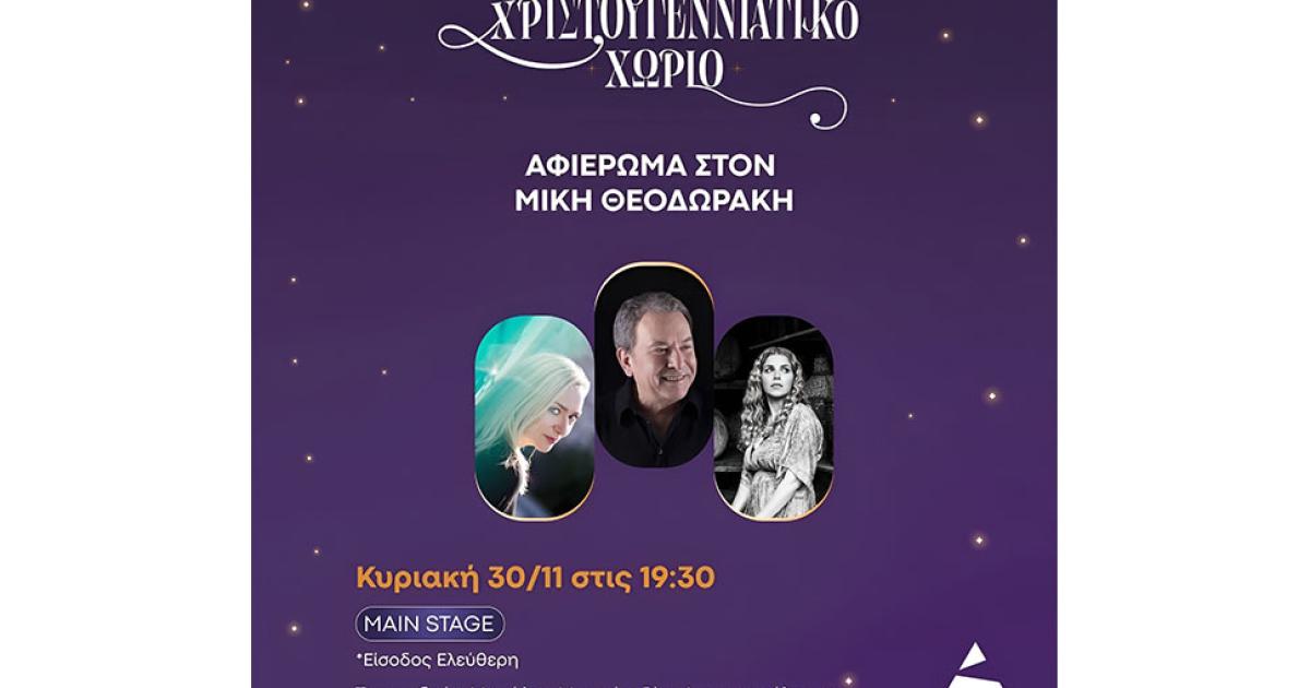 Στις 19:30, η κεντρική σκηνή του Χωριού θα πλημμυρίσει από τις διαχρονικές μελωδίες του αξεπέραστου μουσικοσυνθέτη Μίκη Θεοδωράκη. Ο Μανώλης Μητσιάς, η Ρίτα Αντωνοπούλου και η Βιολέτα Ίκαρη ενώνουν τις φωνές τους και προσκαλούν το κοινό σε μια συναυλία γεμάτη συγκίνηση – με αγαπημένα τραγούδια που έχουν μεγαλώσει γενιές. Μια γιορτή μουσικής, πολιτισμού και συλλογικής μνήμης, ανοιχτή σε όλη την οικογένεια.