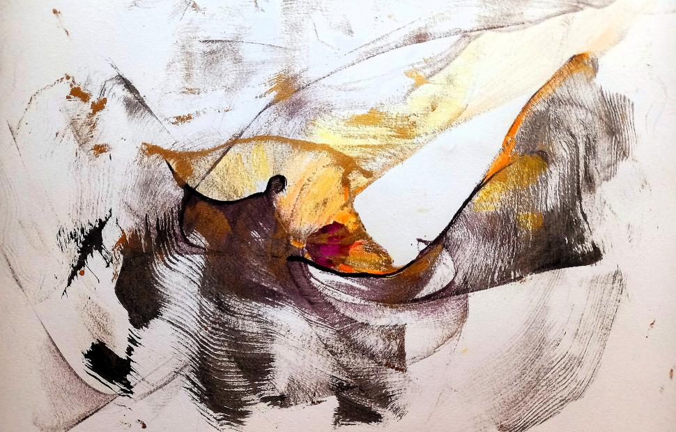 Μέσα από τα παιχνιδίσματα που κάνει το μελάνι, αφήνοντας τα ίχνη του πάνω στο χαρτί και με δικές μου «μικρές» επεμβάσεις, παίρνει σώμα, μορφή και ψυχή, ό,τι δημιουργώ.