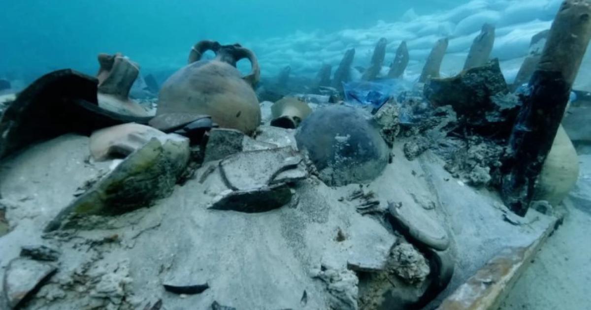 Οι ερευνητές ανακάλυψαν μία συλλογή κεραμικών αντικειμένων, κυρίως αμφορέων, που χρησιμοποιούνταν για την αποθήκευση και μεταφορά διαφόρων αντικειμένων εντός της περιοχής του φορτίου του πλοίου.