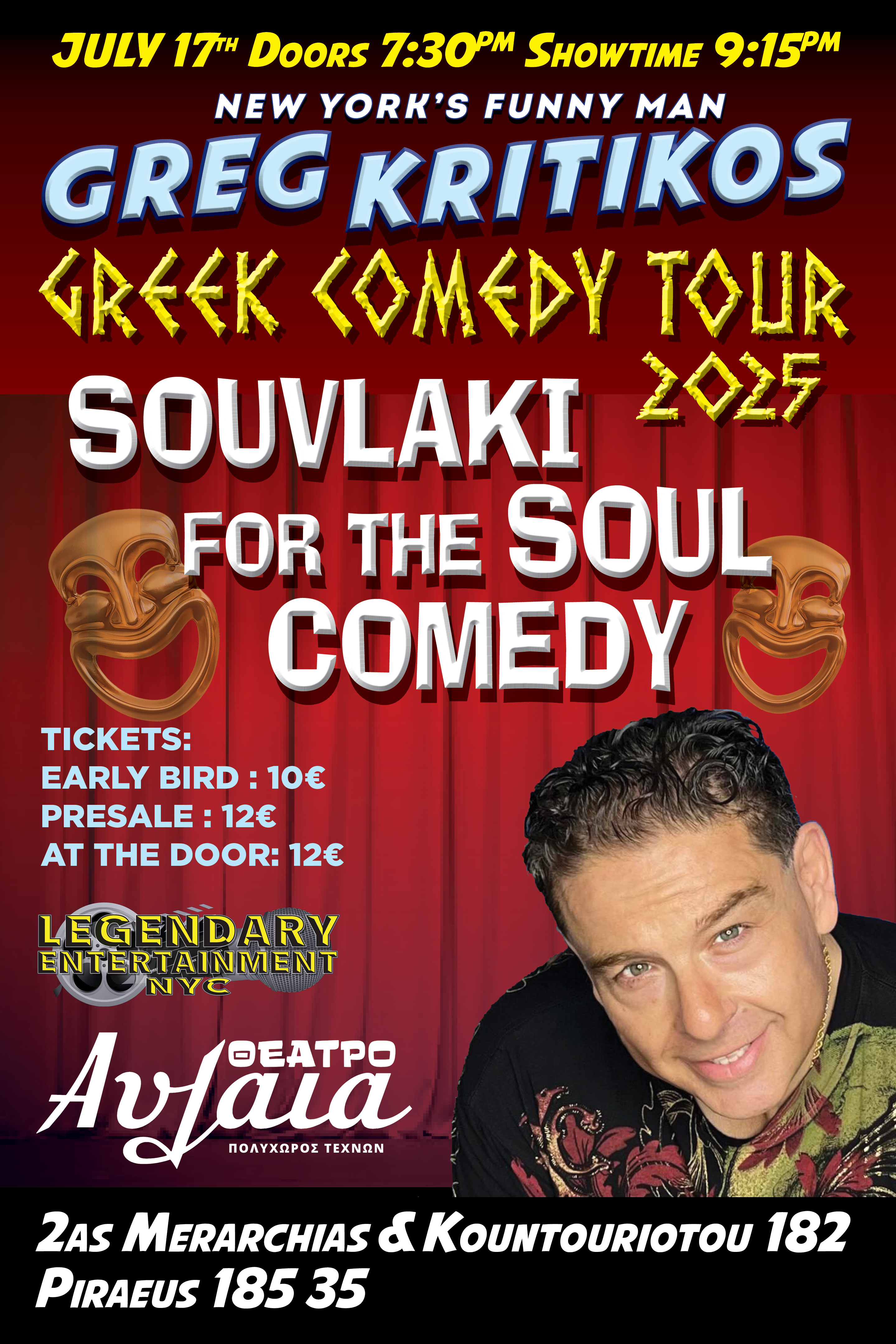 Ένας από τους πιο καταξιωμένος κωμικούς του standup στην Νέα Υόρκη έρχεται να παρουσιάσει την δουλειά του για πρώτη φορά στην Ελλάδα ξεκινώντας από την Αθήνα και την Ρόδο έχοντας σκοπό να περιοδεύσει μέσα στο το καλοκαίρι του 2025 σε όλους τους μοναδικούς προορισμούς του τόπου μας.