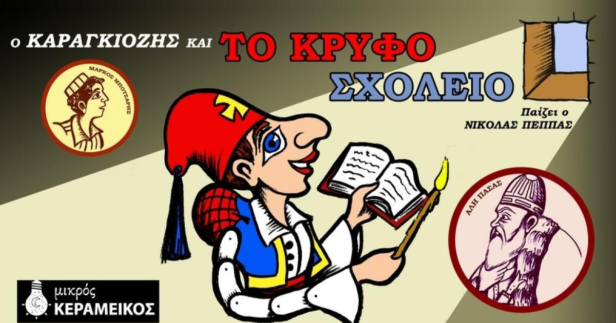 Στο Θέατρο Μικρός Κεραμεικός παρουσιάζεται η παράσταση θεάτρου σκιών «Ο ΚΑΡΑΓΚΙΟΖΗΣ ΚΑΙ ΤΟ ΚΡΥΦΟ ΣΧΟΛΕΙΟ» του Νικόλα Πέππα για δύο μόνο παραστάσεις, την Κυριακή 23 Μαρτίου στις 11:30 και στις 15:00.