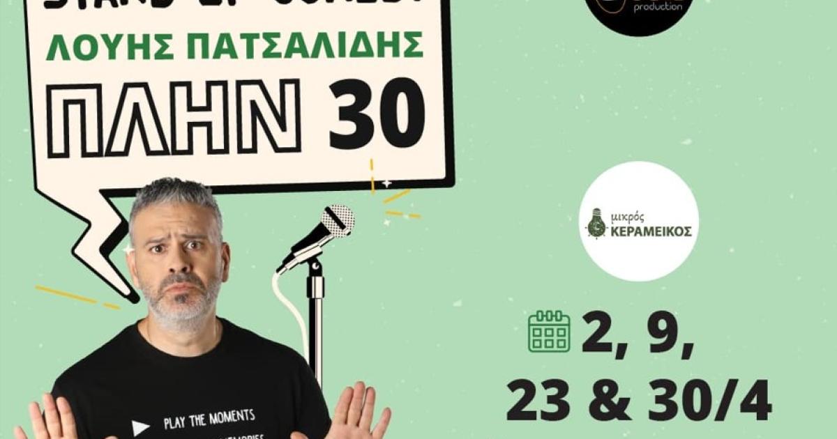 Ο πιο δημοφιλής κωμικός της Κύπρου, και παρουσιαστής του πρώτου σε τηλεθέαση προγράμματος του ΑLΡΗΑ Κύπρου, «Λούης Night Show», Λούης Πατσαλίδης είναι αποφασισμένος ν’ αναστατώσει για ακόμη μια φορά την Αθήνα µε τον υπέρμετρο αυθορμητισμό του και το ολοκαίνουριο solo του, «ΠΛΗΝ 30» για 4 μόνο παραστάσεις, στις 2, 9, 23 και 30 Απριλίου στο Θέατρο Μικρός Κεραμεικός.