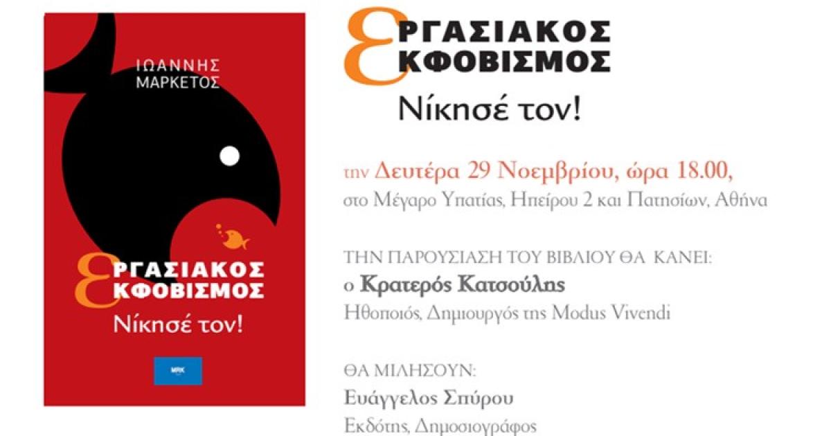 Την Δευτέρα 29 Νοεμβρίου 2021 ,στις 18.00, θα πραγματοποιηθεί στο Μέγαρο της Υπατίας, Πατησίων & Ηπείρου 2, η παρουσίαση του νέου βιβλίου του Ιωάννη Μαρκέτου, Εργασιακός Εκφοβισμός – Νικησέ Τον.