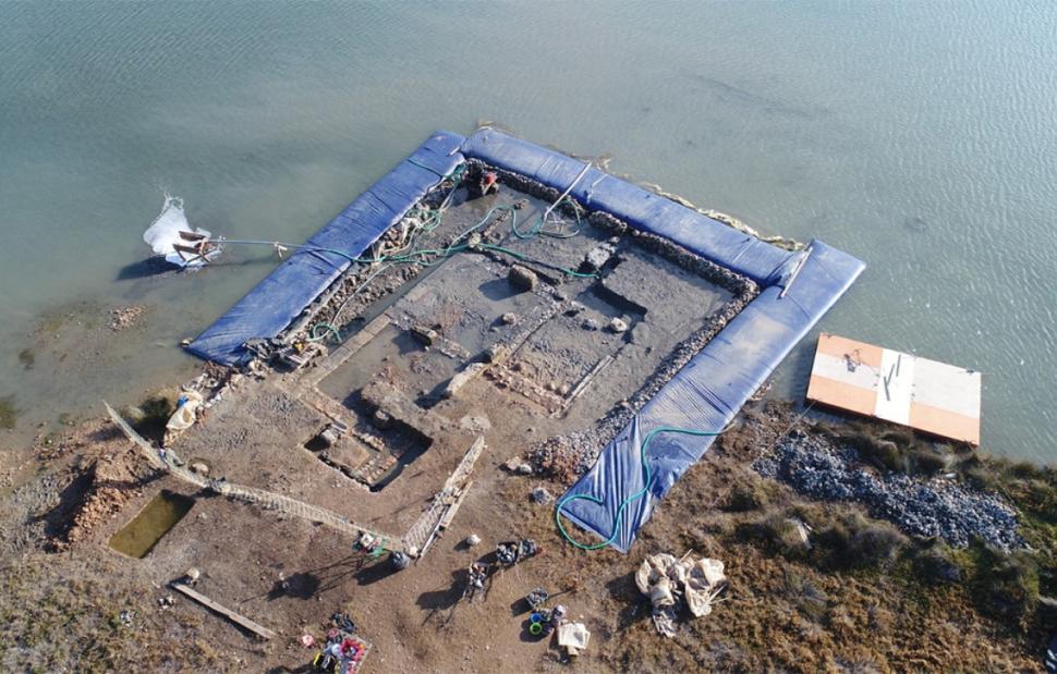Η διερεύνηση του καταβυθισμένου τμήματος του κτηρίου, προσαρμοσμένη σε κάναβο με τετράγωνα 4 x4 μ., πραγματοποιήθηκε σε δύσκολο βουρκώδες περιβάλλον με την εφαρμογή, και πάλι, ‘αμφίβιας' ανασκαφικής τεχνικής, η οποία συνδυάζει μεθόδους και πρακτικές της χερσαίας και της υποβρύχιας Αρχαιολογίας και επιτεύχθηκε με την τοποθέτηση ειδικού εύκαμπτου υδατοφράκτη και την χρησιμοποίηση 3 υδραντλιών για την καθημερινή απάντληση των υδάτων και την αφαίρεση των ιζημάτων σε θαλάσσιο πεδίο συνολικής εκτάσεως 190 τ.μ.