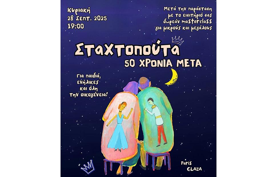 «Σταχτοπούτα, 50 χρόνια μετά». Η διάσημη παριζιάνικη ομάδα Glaza παρουσιάζει στον Χώρο Τεχνών Δήμου Βέροιας την πιο τρυφερή και αστεία παράσταση της χρονιάς. Μια πρωτότυπη θεατρική εμπειρία χωρίς λόγια, βασισμένη στη μαγεία του σωματικού θεάτρου με χιούμορ, συγκίνηση και μαγεία!
