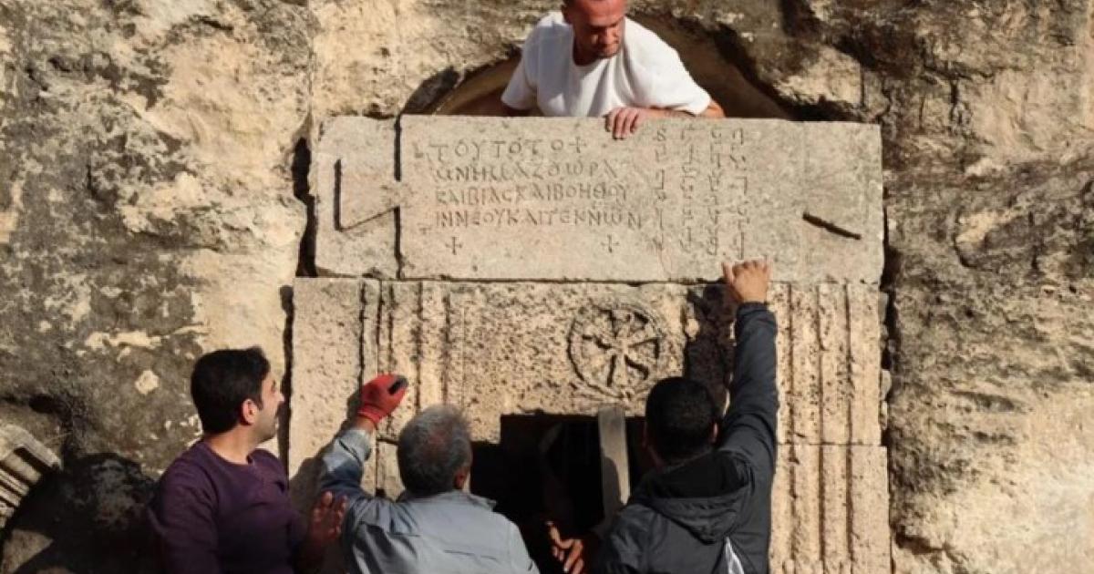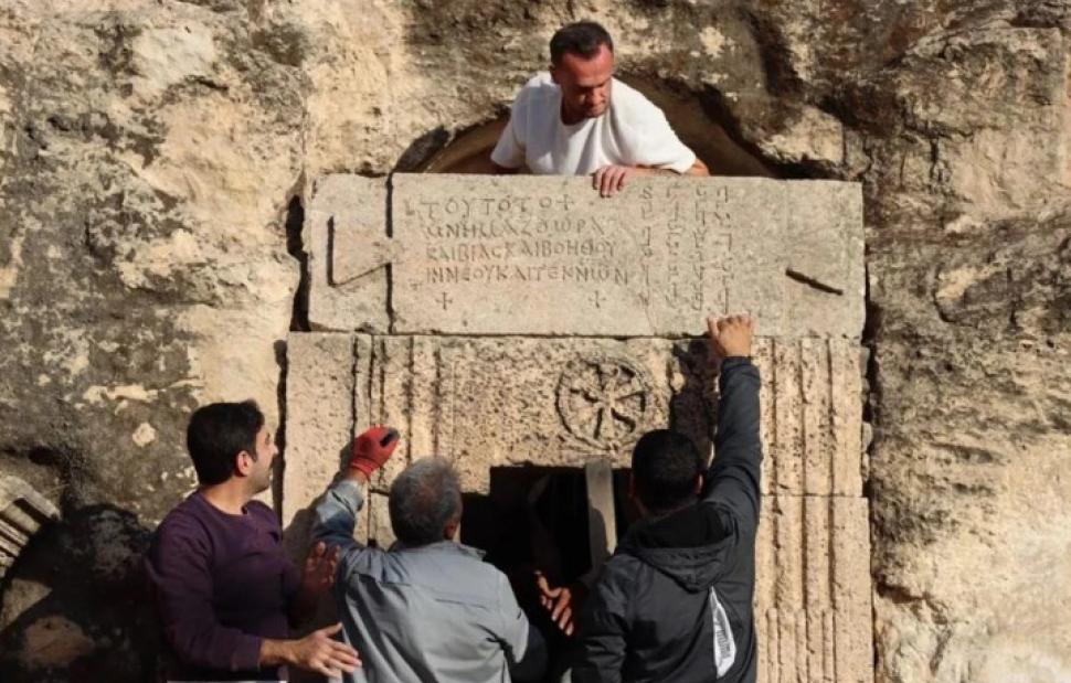 Κατά τη διάρκεια της ανασκαφής, έγινε μια σημαντική ανακάλυψη κοντά στην είσοδο ενός ταφικού θαλάμου με το μονόγραμμα του Ιησού Χριστού (Ας αναπαυθεί εν ειρήνη). Ήρθε στο φως μία tabula ansata, (αναθηματική πλάκα), χαρακτηριστική μορφή για πλάκες στην Αυτοκρατορική Ρώμη, με επιγραφές στα ελληνικά και τα αραμαϊκά. Τα αρχαία κείμενα προσφέρουν πολύτιμες γνώσεις για την πολιτιστική ιστορία της περιοχής.
