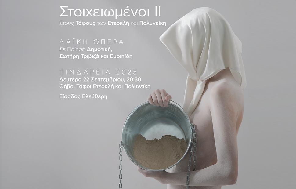 O Δήμος Θηβαίων σε συνδιοργάνωση με την Περιφέρεια Στερεάς Ελλάδας στο πλαίσιο των "Πινδαρείων 2025”, παρουσιάζουν τη λαϊκή όπερα Στοιχειωμένοι ΙΙ του Δημήτρη Μαραμή στους Μυκηναϊκούς Τάφους των Ετεοκλή και Πολυνείκη, στην καρδιά της Θήβας.