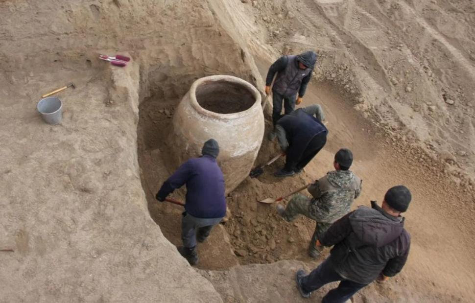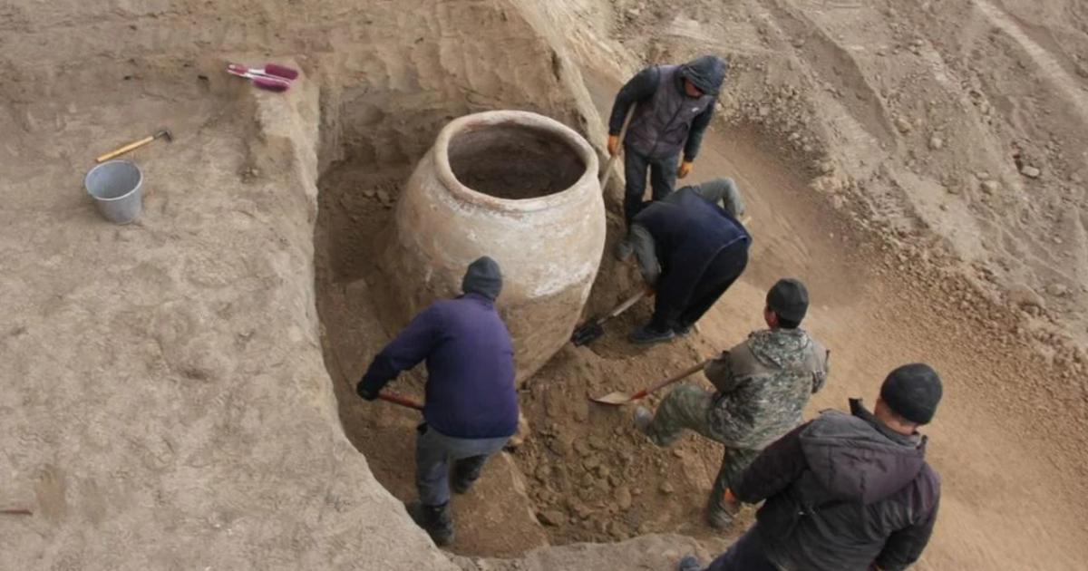 Ένα τεράστιο πιθάρι ύψους 1.75 μέτρων, γνωστό ως «hum», κατά τη διάρκεια πρόσφατων αρχαιολογικών ανασκαφών στην πόλη Ούζγκεν στην επαρχία Ος της Κιργιζίας.