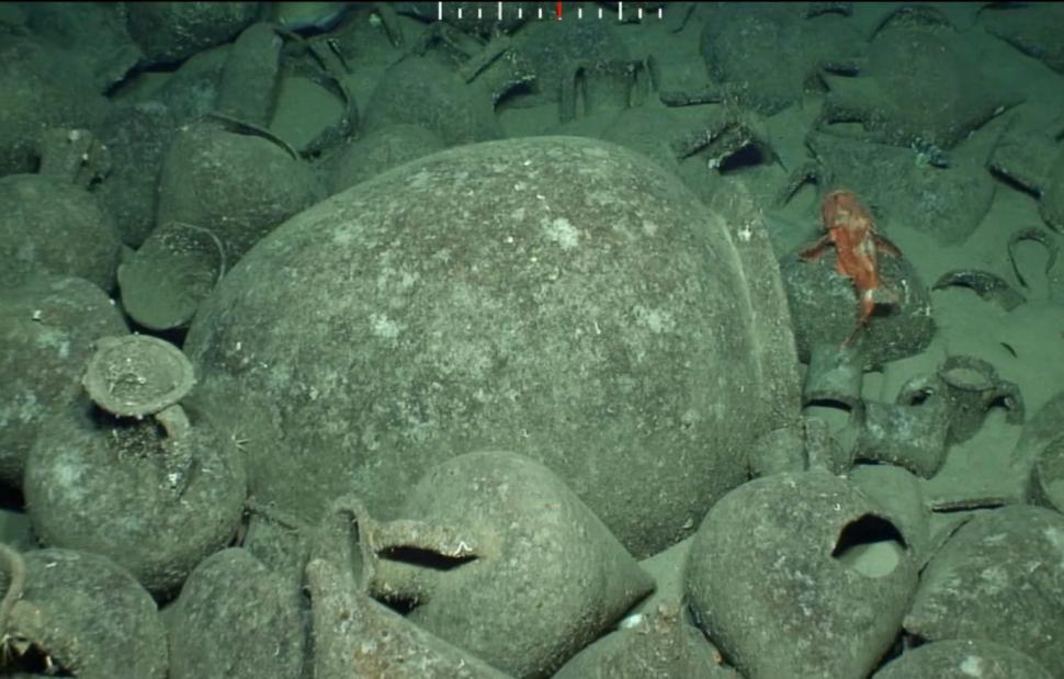 Συγκεκριμένα διαπιστώθηκε ότι εκτός από το φορτίο του πλοίου που αποτελείται κυρίως από κερκυραϊκούς αμφορείς, δευτερευόντως αμφορείς του επονομαζόμενου τύπου Solocha II, με πιθανή προέλευση από την αρχαία Πεπάρηθο (Σκόπελο), αμφορείς από την Χίο και τρείς πίθους, μετέφερε σύνολο επιτραπέζιων αγγείων από τα οποία ανελκύστηκαν ένας επιτραπέζιος αμφορίσκος με επίπεδη βάση, ένα πινάκιο και ένα ιχθυοπινάκιο και δύο σκυφίδια.