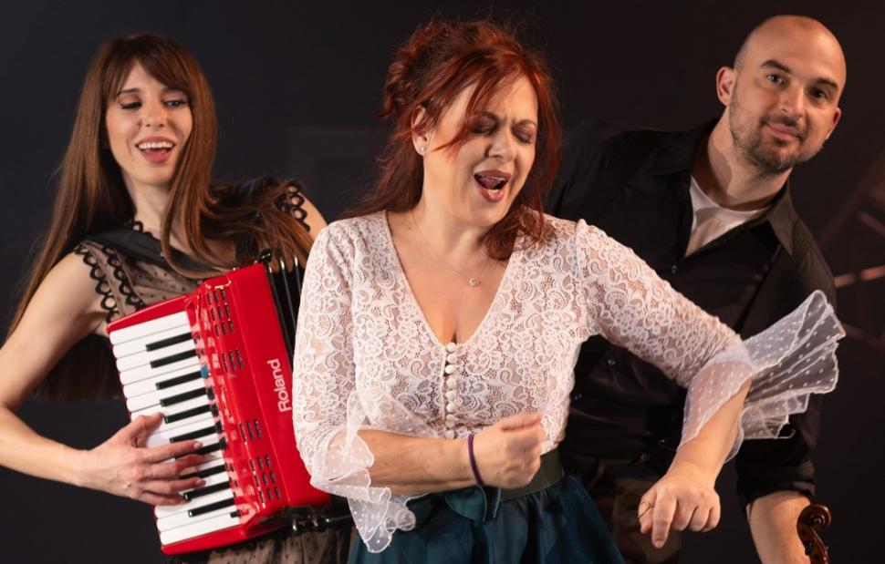 Eπί σκηνής η αέρινη Μιρέλλα Πάχου τραγουδά, παίζει ακορντεόν και όχι μόνο. Στο βιολί ο Αλέξανδρος Ιακώβου.