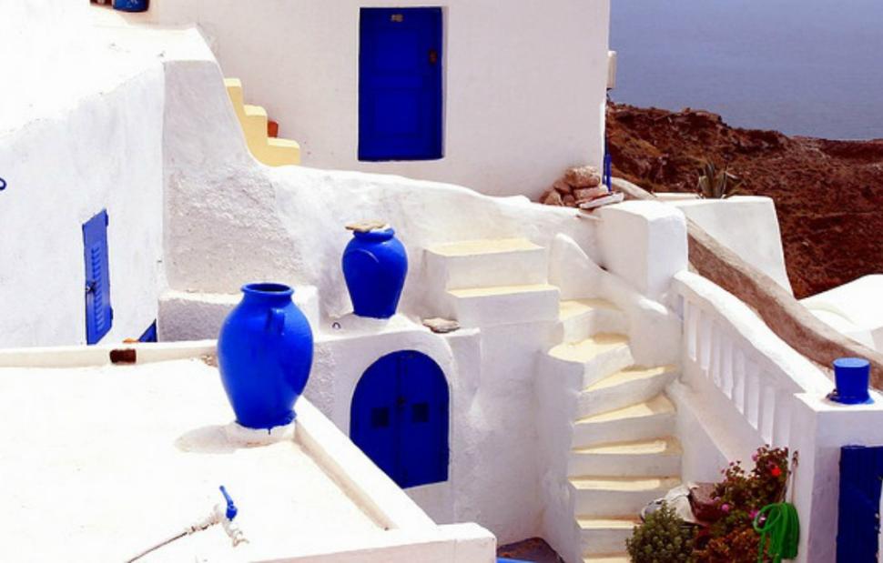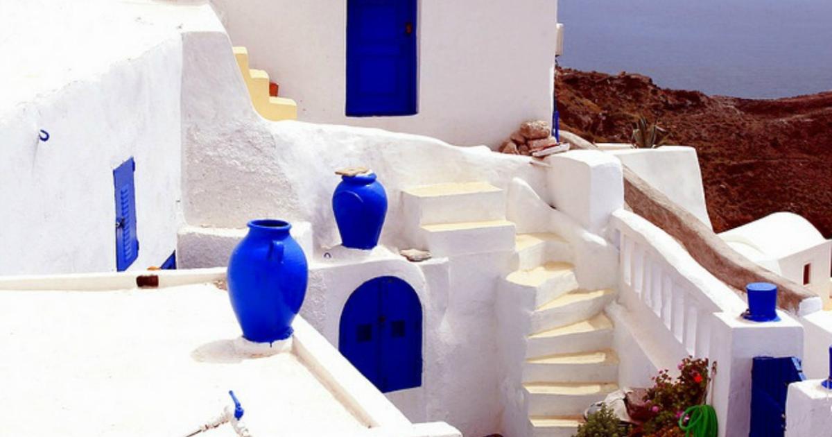 Σ’ ένα σπίτι λευκό με μπλε παντζούρια