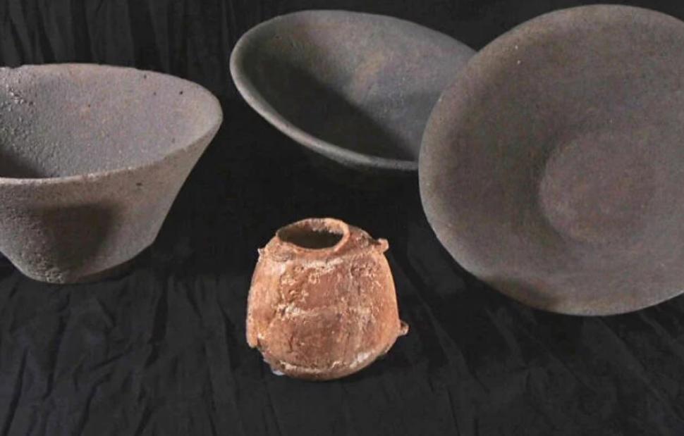 Προς το τέλος του εγχειρήματος, ο φωτογράφος της IAA, Emil Aladjem, παρατήρησε το χείλος ενός αντικειμένου από βασάλτη. Εξερευνώντας την περιοχή, οι αρχαιολόγοι ανακάλυψαν τρία μεγάλα κύπελλα επιδέξια κατασκευασμένα από τον ηφαιστειακό βράχο, με μία έκπληξη στο εσωτερικό τους. To ένα μπολ είχε μπει σε άλλο μπολ, όπως τα οργανώνουμε για να χωρέσουν στο ντουλάπι.