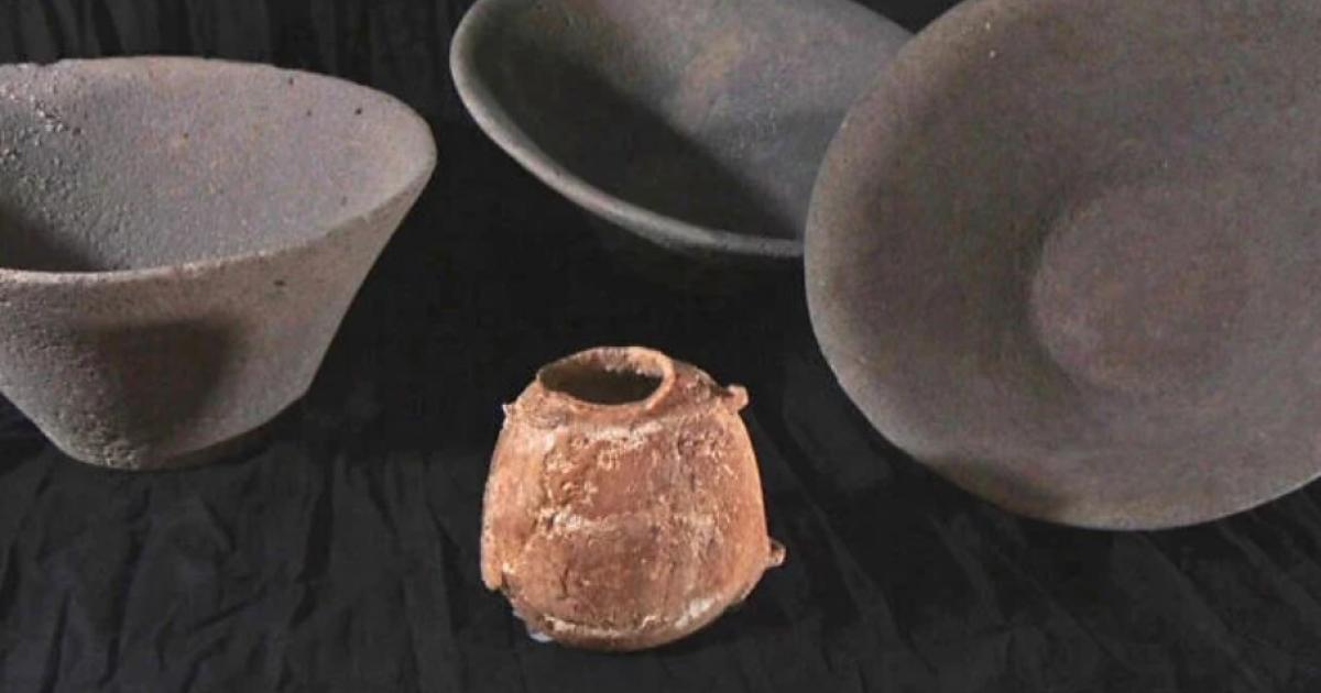 Μεγάλα κύπελλα από βασάλτη που χρησιμοποιήθηκαν σε ένα σπασμένο αγγείο από ελεφαντόδοντο πριν από 6.000 χρόνια, που βρέθηκε κοντά στην Beersheva. (Davida Dagan/IAA)