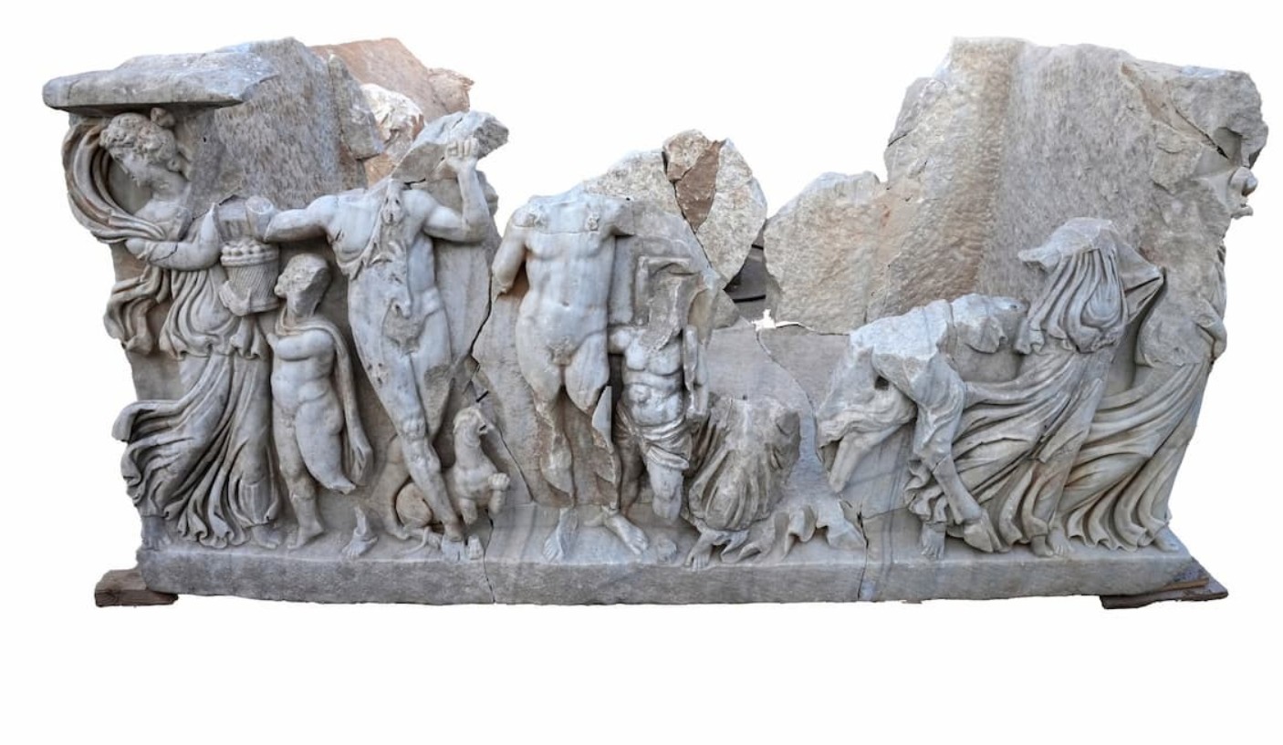 Η ενδελεχής εργασία, έκανε δυνατή την πλήρη ανασύνθεση των λαξευμένων σκηνών, οι οποίες απεικονίζουν τον Διόνυσο στο κέντρο, να περιβάλλεται από μία ολόκληρη ακολουθία μυθολογικών μορφών: μαινάδες, σατύρους, τον Ερμή, τον Πάνα, λιοντάρια και τίγρης, σε εορταστική, συμποσιακή ατμόσφαιρα.