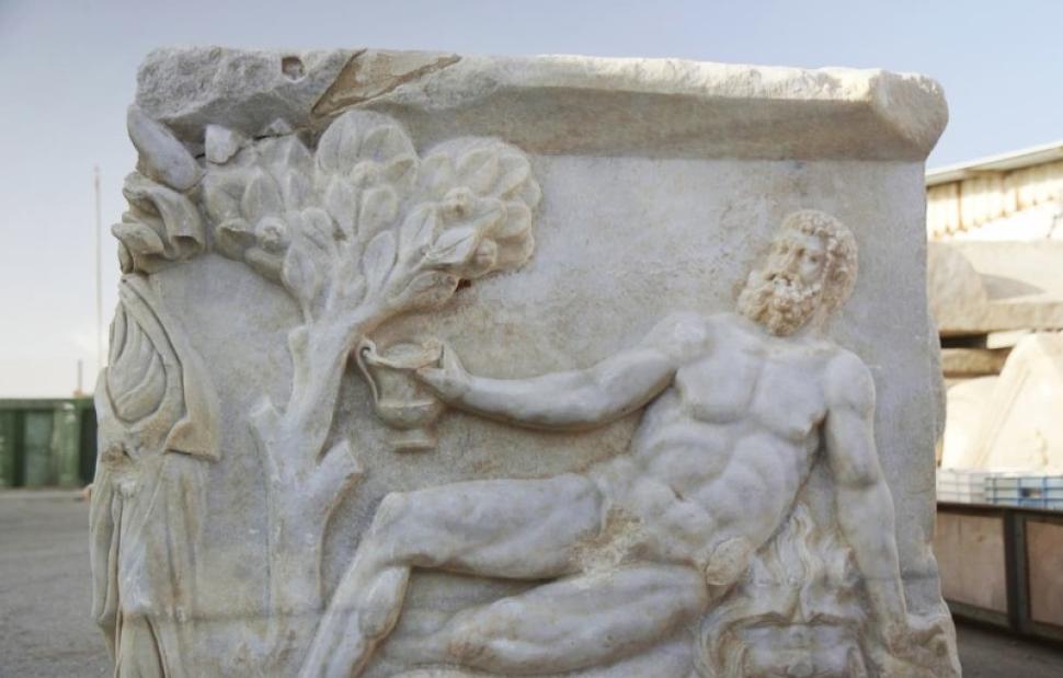 Κατά τη διάρκεια των εργασιών τους στην αρχαία πόλη της Καισάρειας, αρχαιολόγοι στο Ισραήλ ανακάλυψαν μια μαρμάρινη σαρκοφάγο της ρωμαϊκής εποχής, στην οποία απεικονίζεται μια εξαίσια σκηνή της μυθολογίας. Πρόκειται για έναν διαγωνισμό οινοποσίας μεταξύ του Διονύσου, θεού του κρασιού, και του Ηρακλή, του μυθικού ήρωα.