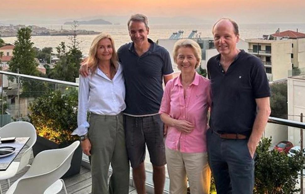 Οι υψηλοί προσκεκλημένοι, η Ούρσουλα φον ντερ Λάιεν και ο σύζυγός της Γερμανός γιατρός, Χάικο φον ντερ Λάιεν, έχουν ταξιδέψει στην Κρήτη για ένα μικρό διάλειμμα από τις υποχρεώσεις τους και μένουν στη βίλα Μητσοτάκη, στο Ακρωτήρι.