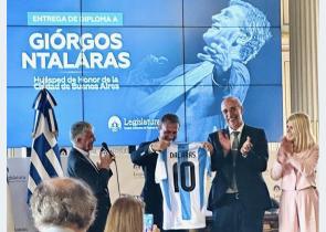 Τη θρυλική φανέλα με το νούμερο 10 της Εθνικής Αργεντινής που έχει φορεθεί τόσο από τον Νιτέγκο Μαραντόνα όσο και από τον Λιονέλ Μέσι χάρισε στον Γιώρ...