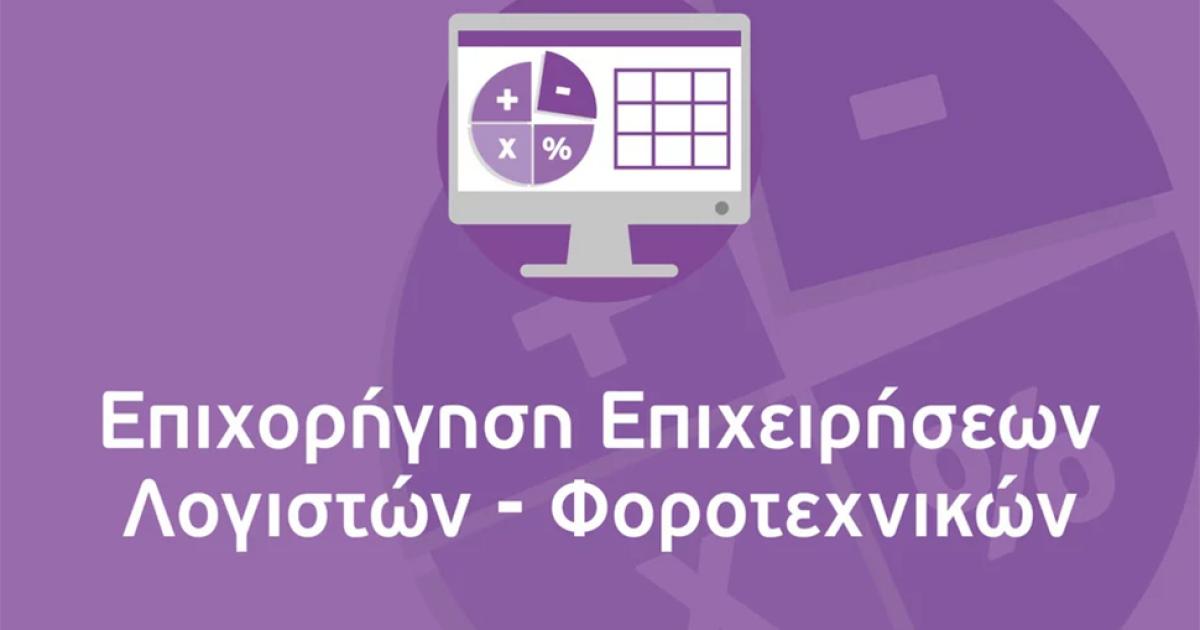Η δράση που αφορά στην ενίσχυση αυτοαπασχολούμενων λογιστών - φοροτεχνικών, καθώς και νομικών προσώπων παροχής λογιστικών και φοροτεχνικών υπηρεσιών, ονομάζεται «Επιχορήγηση Επιχειρήσεων Παροχής Λογιστικών και Φοροτεχνικών Υπηρεσιών». Η υποβολή των αιτήσεων ένταξης σε αυτή ξεκινά την Τετάρτη 9 Μαρτίου 2022 και ώρα 12:00.