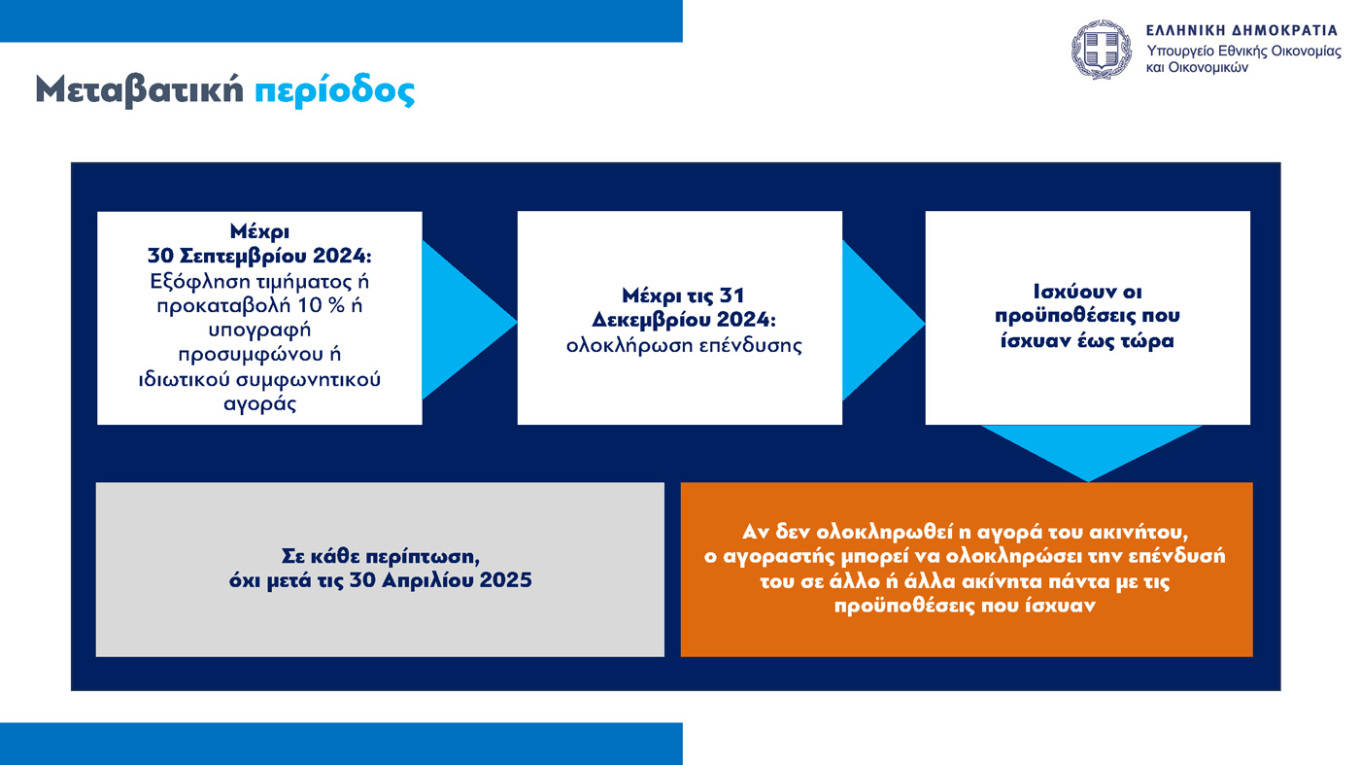 Oι επενδυτές θα πρέπει να αγοράσουν με 800.000 ή 400.000 ευρώ (ανάλογα την περιοχή) ένα ακίνητο που θα πρέπει και να είναι επιφάνειας 120 τ.μ. ή μεγαλύτερο.
