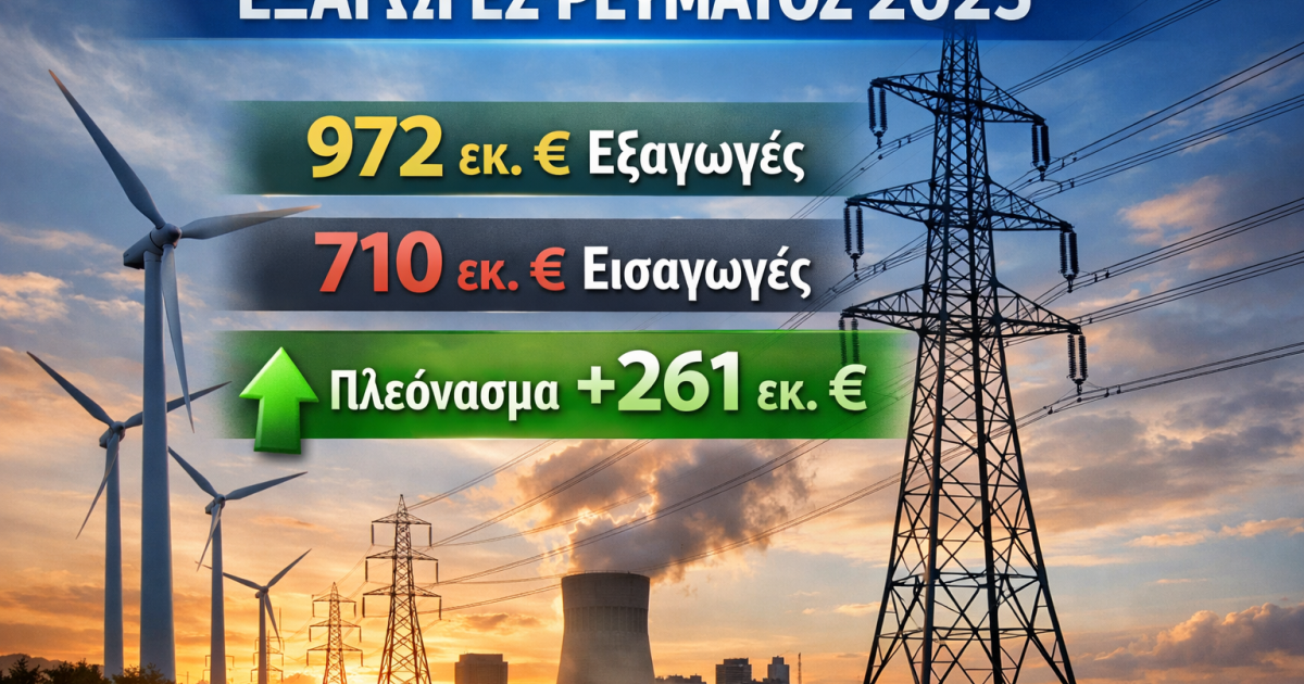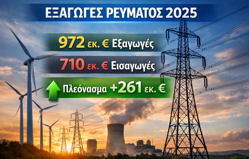 Κοντά στο 1 δισ. ευρώ έφθασαν το 2025 τα έσοδα από τις εξαγωγές ηλεκτρικής ενέργειας, με αποτέλεσμα το όφελος για το εμπορικό ισοζύγιο της χώρας σε σχέση με το 2019 να υπερβαίνει πλέον τα 650 εκατ. ευρώ.
