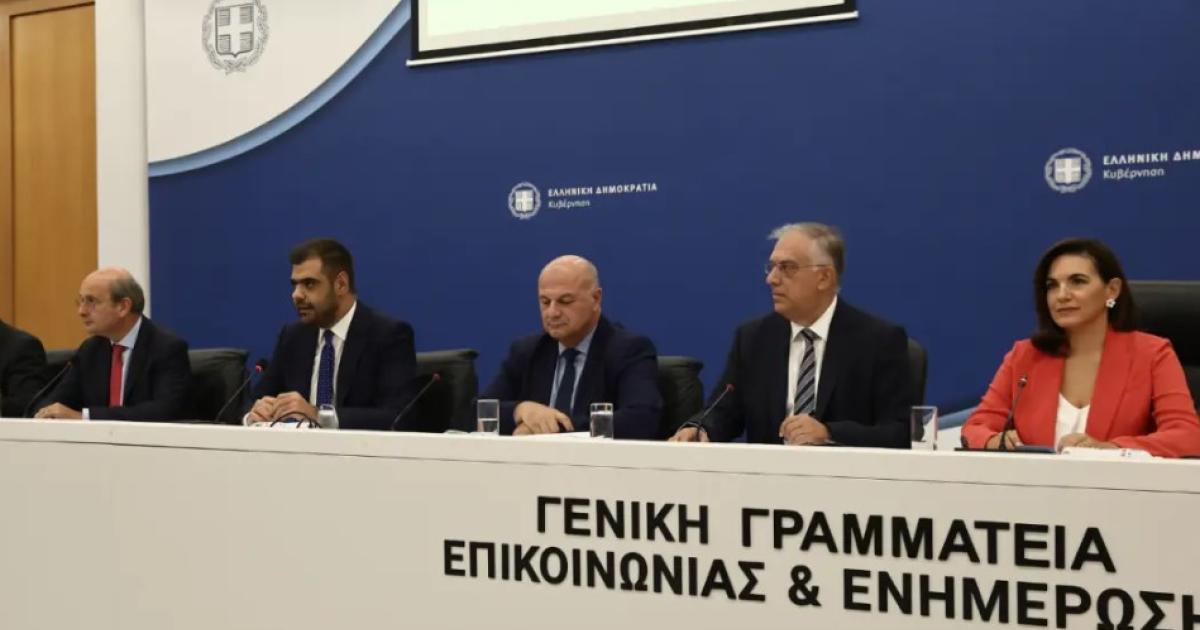 Στη συνέντευξη Τύπου συμμετείχαν ο υπουργός Ανάπτυξης, Τάκης Θεοδωρικάκος, μαζί με τον Υπουργό Εθνικής Οικονομίας και Οικονομικών, Κωστή Χατζηδάκη, τον Αναπληρωτή Υπουργό Εθνικής Οικονομίας και Οικονομικών, Νίκο Παπαθανάση, τον Υπουργό Αγροτικής Ανάπτυξης και Τροφίμων, Κωνσταντίνο Τσιάρα και την Υπουργό Τουρισμού, Όλγα Κεφαλογιάννη.