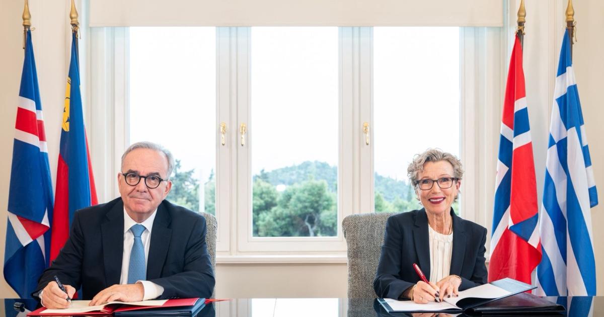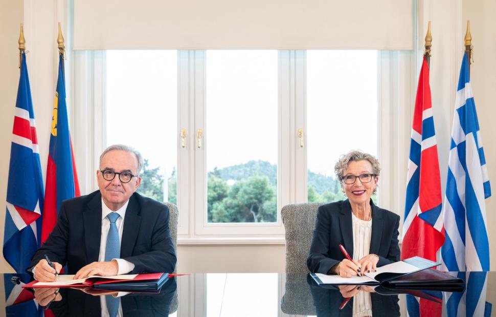Το Μνημόνιο Κατανόησης (MoU) μεταξύ της Ελλάδας και των τριών Δοτριών Χωρών (Ισλανδία, Νορβηγία, Λιχτενστάιν), που εξασφαλίζει νέους πόρους ύψους 143 εκατoμμυρίων ευρώ για τη νέα προγραμματική περίοδο του Ευρωπαϊκού Οικονομικού Χώρου (EEA Grants) 2021-2028, υπέγραψε ο αναπληρωτής υπουργός Εθνικής Οικονομίας και Οικονομικών, Νίκος Παπαθανάσης.
