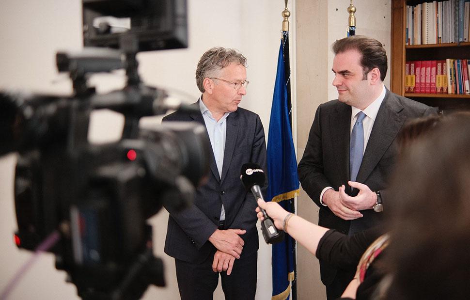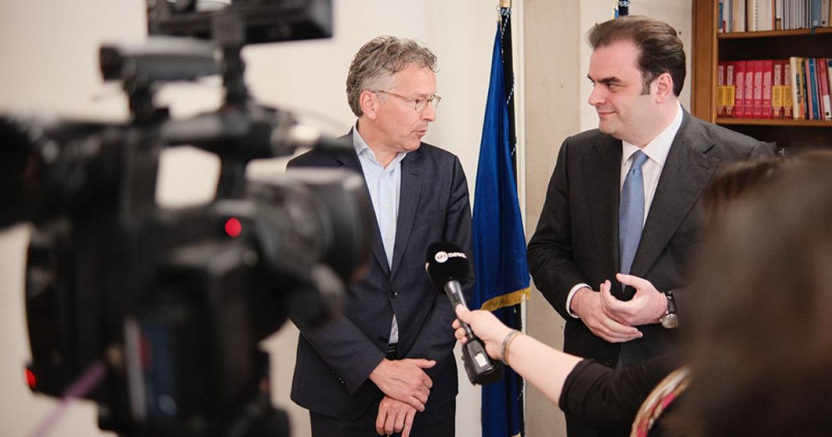 Συνάντηση με τον Πρώην Προέδρο του Eurogroup και Δημάρχο του Αΐντχόβεν, Γερούν Ντάισελμπλουμ είχε σήμερα το πρωί ο Υπουργός Εθνικής Οικονομίας και Οικονομικών και Πρόεδρος του Eurogroup Κυριάκος Πιερρακάκης στο γραφείο του στο Υπουργείο Εθνικής Οικονομίας και Οικονομικών.