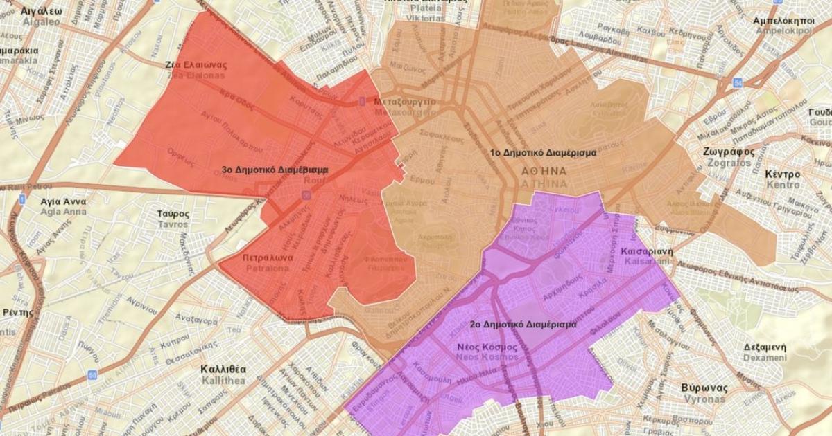 Ο χάρτης των εφτά διαμερισμάτων της Αθήνας
