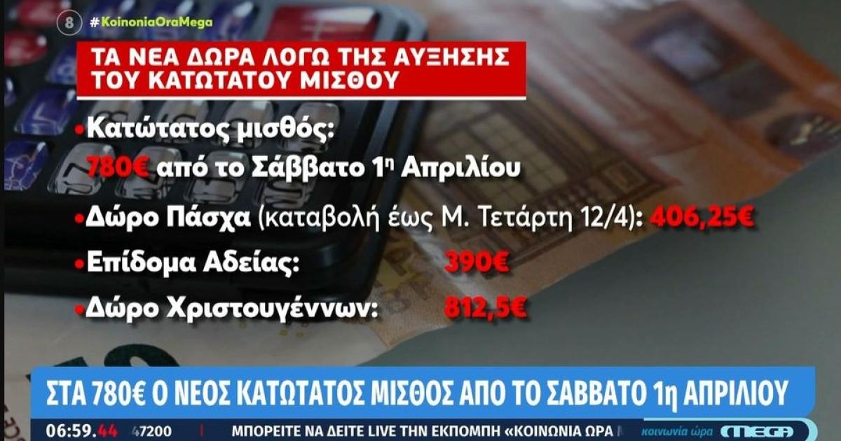 - Κατώτατος μισθός: 780€ από το Σάββατο 1 Απριλίου