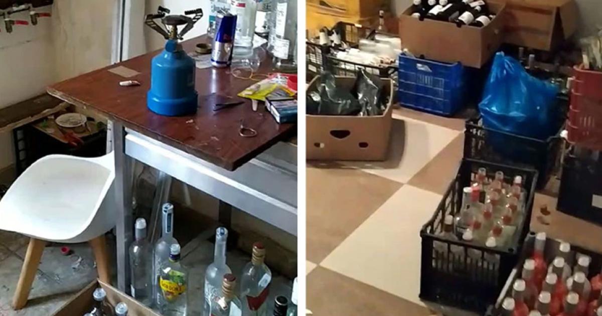 Ειδικότερα, διενεργήθηκαν την 1η/8/2022 έλεγχοι και έρευνες σε τρεις οικίες στο κέντρο της Αθήνας και στα νότια προάστια, οι οποίες χρησιμοποιούνταν για την παραγωγή, εμφιάλωση, αποθήκευση και διακίνηση των λαθραίων-νοθευμένων αλκοολούχων ποτών.